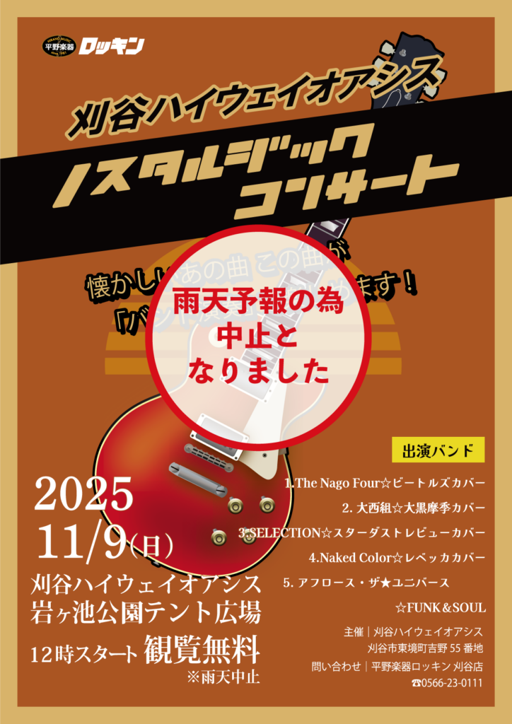 2025.11.08. 雨天予報の為、ノスタルジックコンサートは中止となりました