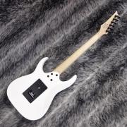 コントラストの効いたホワイトカラーのボディにブラックカラーのハードウェア、フィンガーボードはシャークトゥースインレイを採用し魅力的なルックス。
