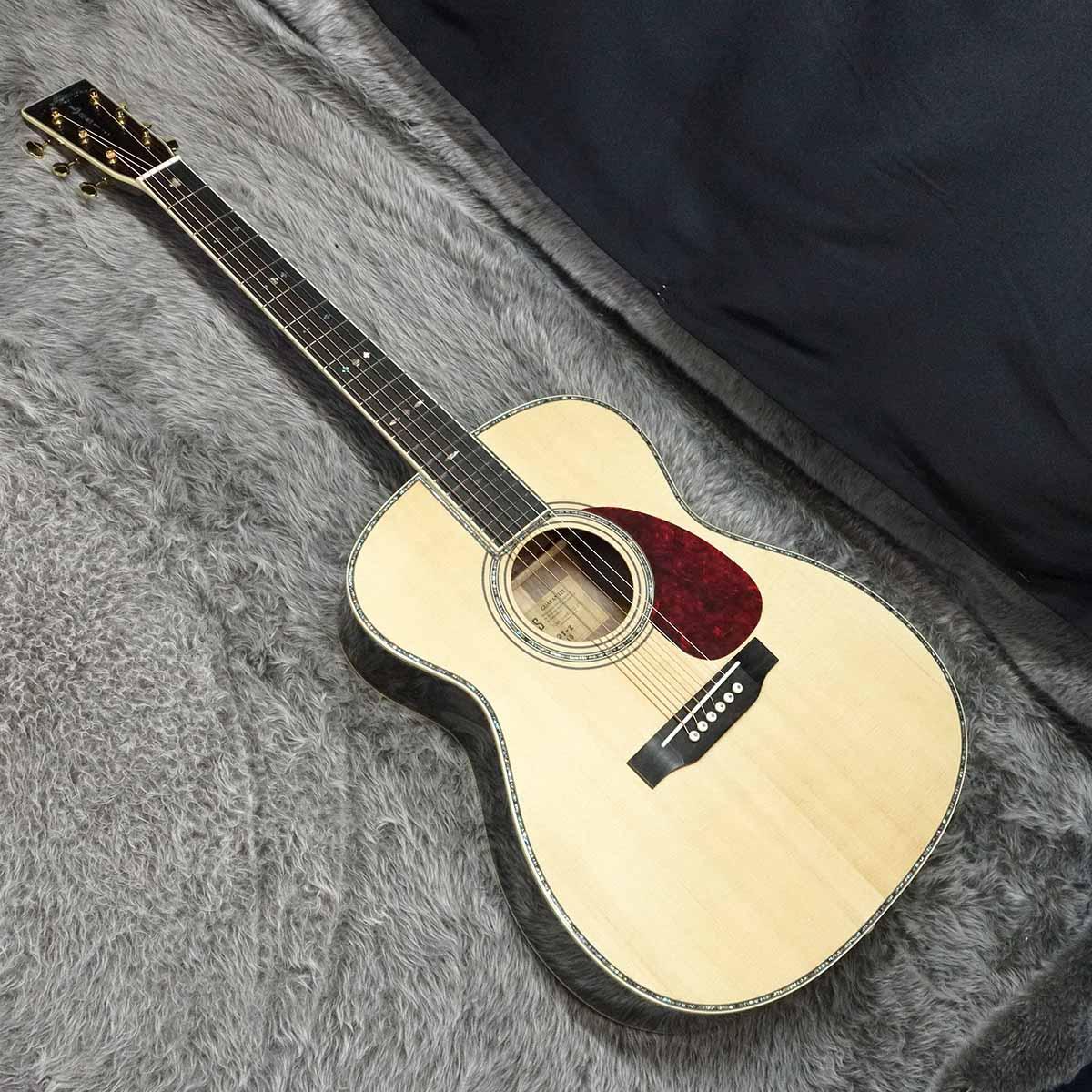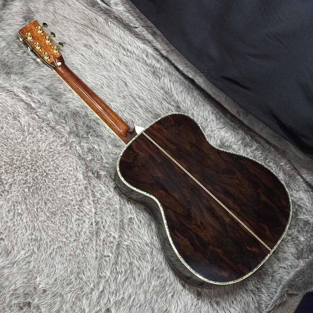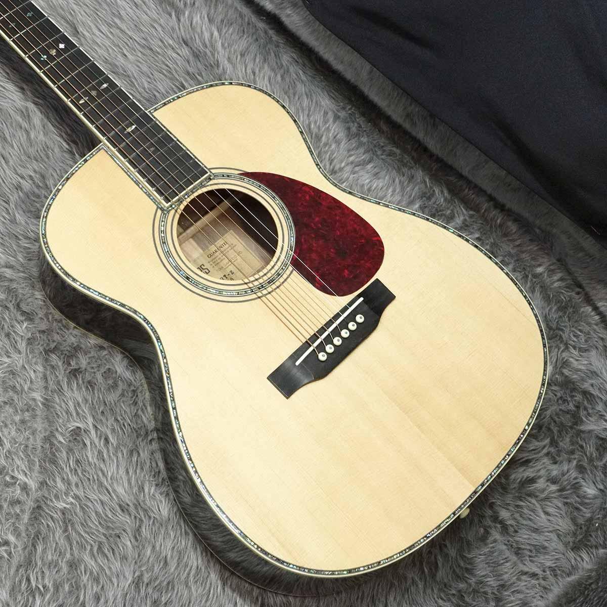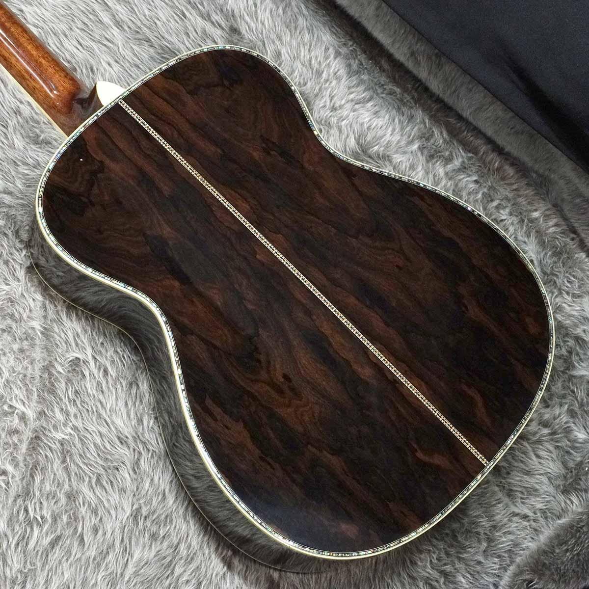 抱え易い000サイズのボディはフィット感が抜群で、サウンドホール周りやバインディングに施されたインレイで高級感のあるルックスに仕上がった一本。