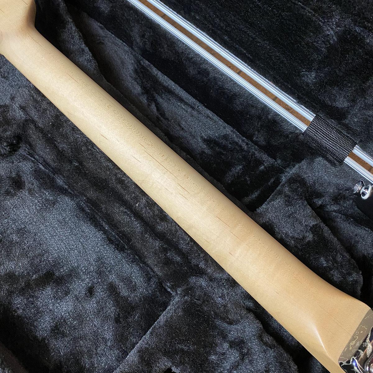 比較的珍しいチョイスのスワンプアッシュボディに本家に負けずのクォーターソーンメイプルネック、貼りメイプル指板といったウッドマテリアル。