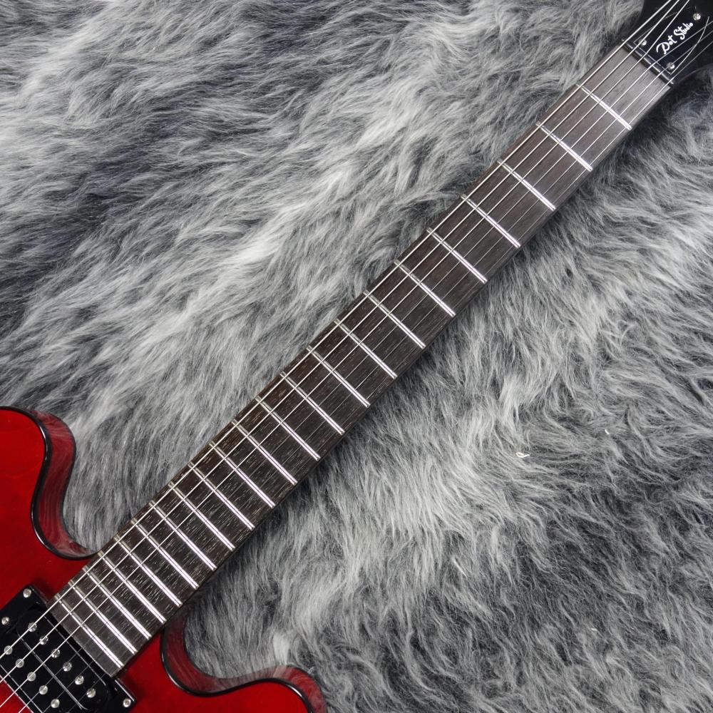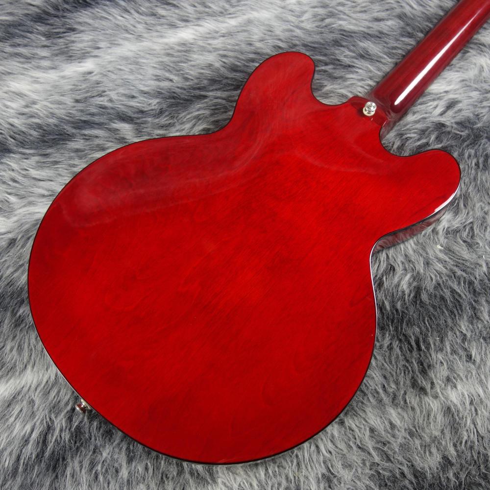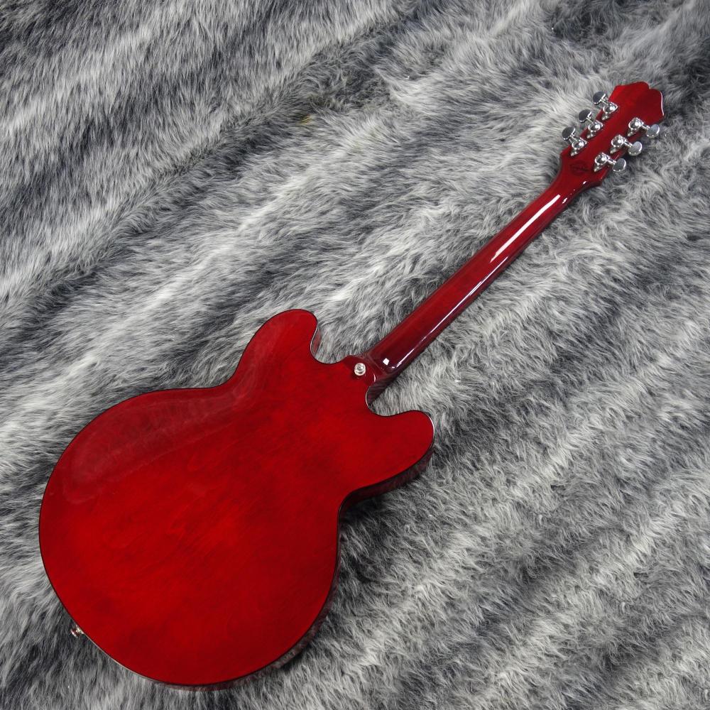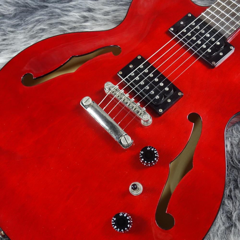 Gibson ES-335のスタイルを踏襲しつつもピックガード、ポジションマーク(指板)を省くことでコストカットを実現しています。
