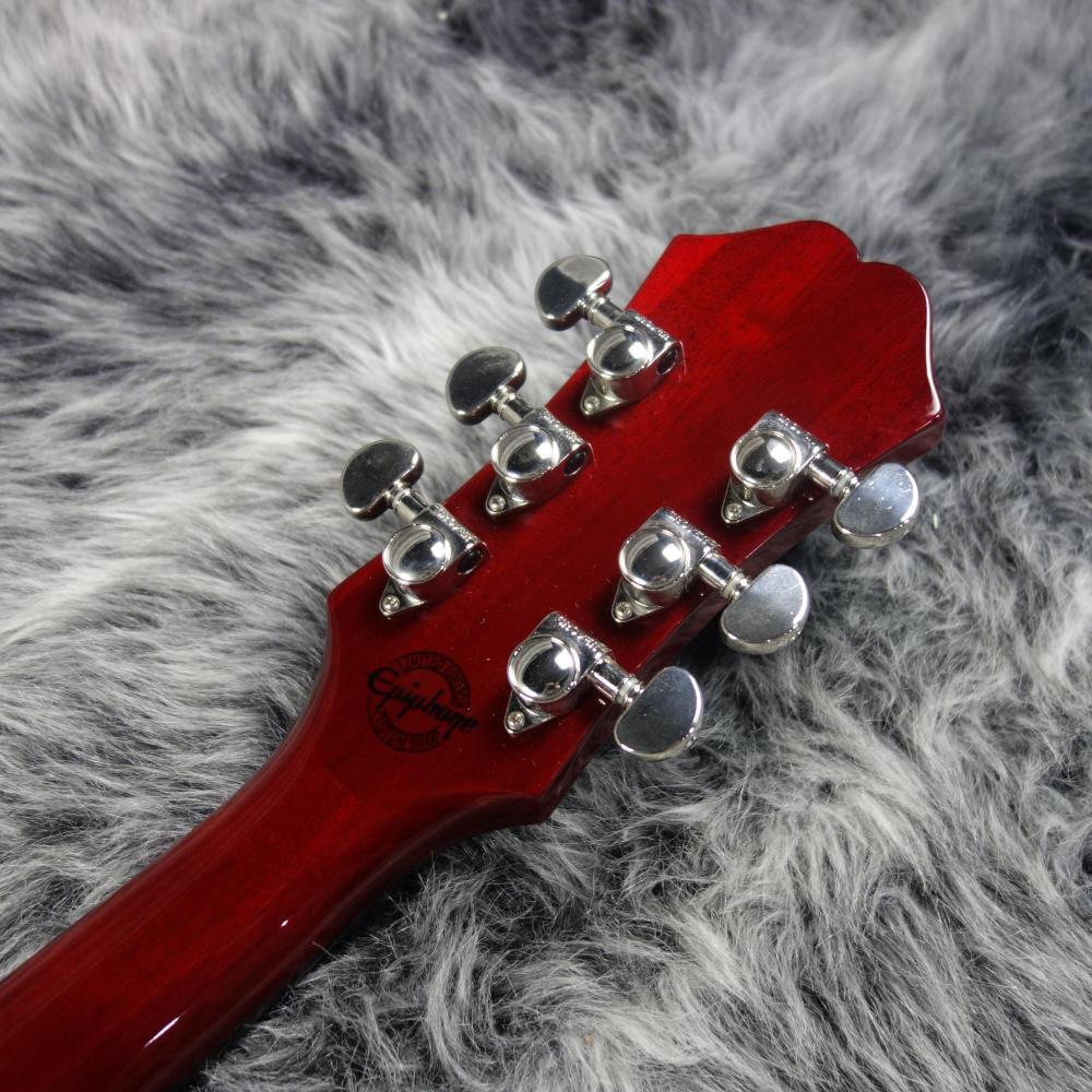 シンプルなルックスでfホールを備えた真っ赤なボディがより引き立ちます。