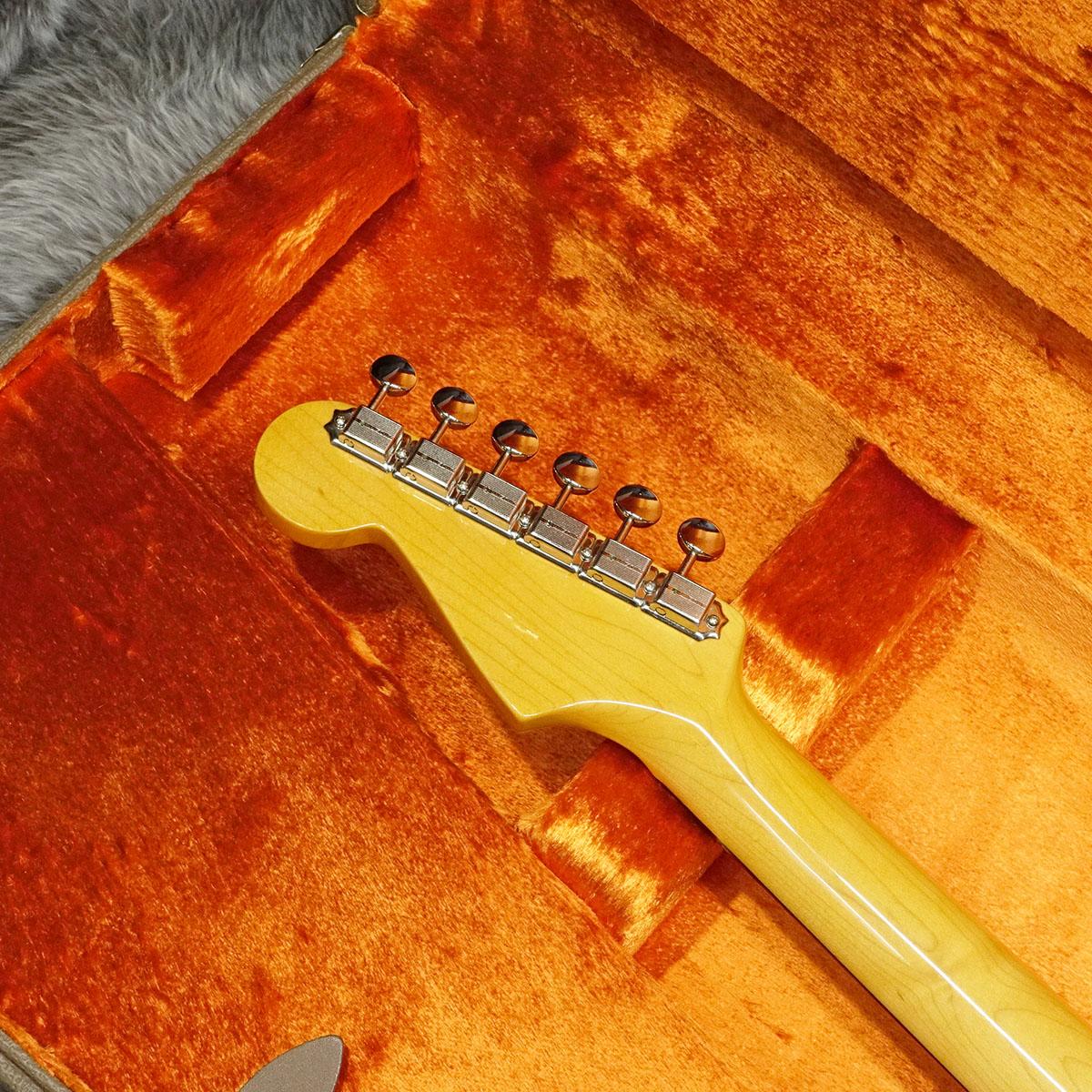 50年代後期から60年代初期にかけて、フェンダー製品は市場の人気を席巻し、ギターのラインナップが急速に多様化していく中においても、Stratocasterは依然として人気の頂点に君臨していました。1961年には、Stratocasterはより洗練された美しさを纏い、より鮮やかな赤と大胆な黒の縁取りを持つ3-Color Sunburstが主流のモデルとなり、Stratocasterの曲線を強調する3-plyピックガードが採用されるようになりました。