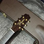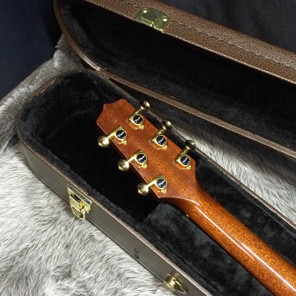 カスタムオーダーによって、黄色味の強いトップの塗装やメイプルバインディング、小さめのボタンのゴールドのペグ、「T」ロゴから「TAKAMINE」と特徴的なルックスに変更されております。