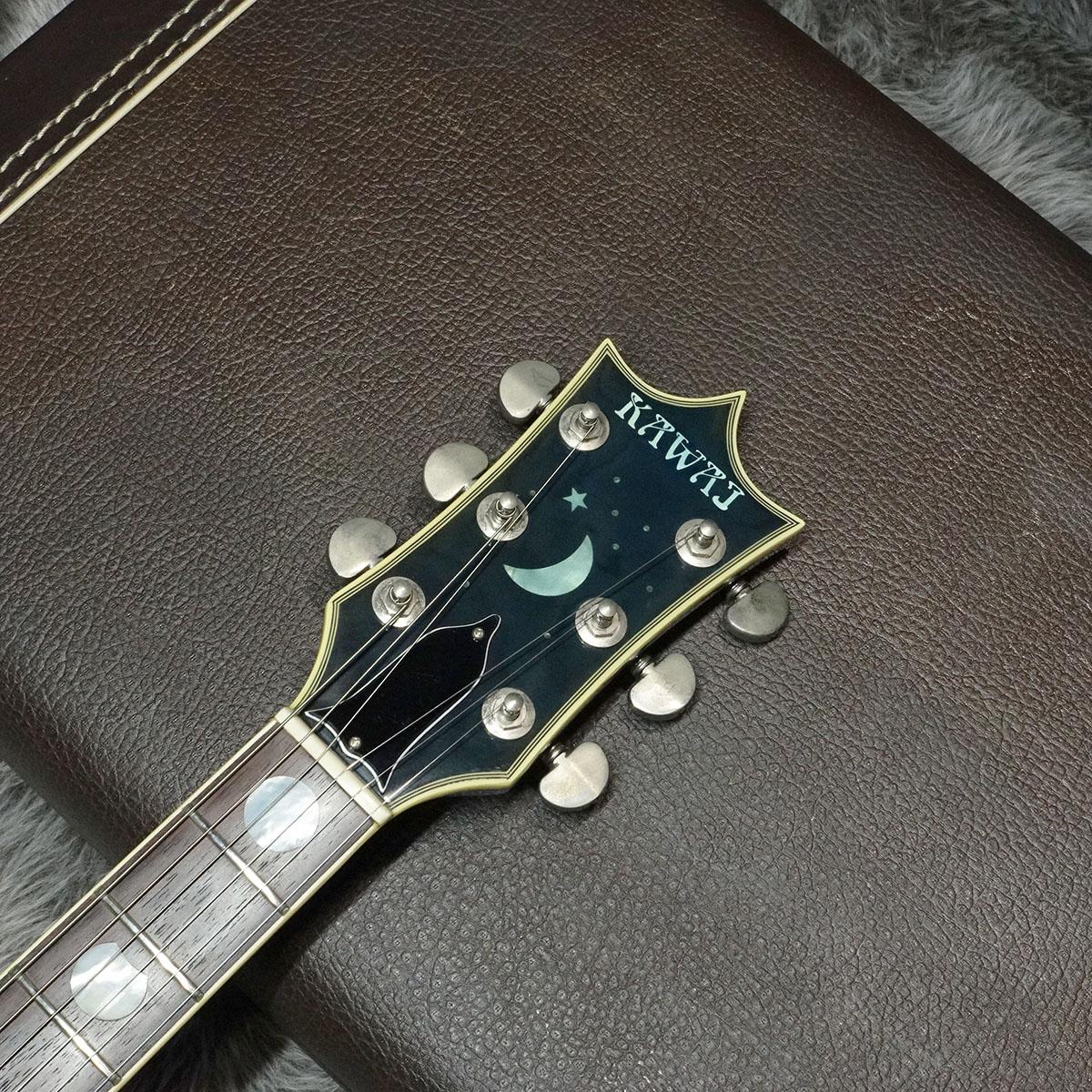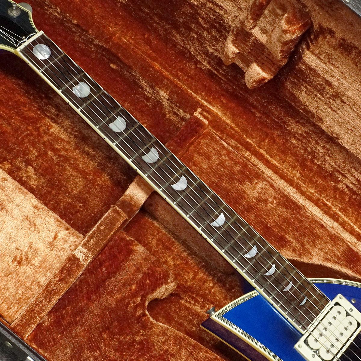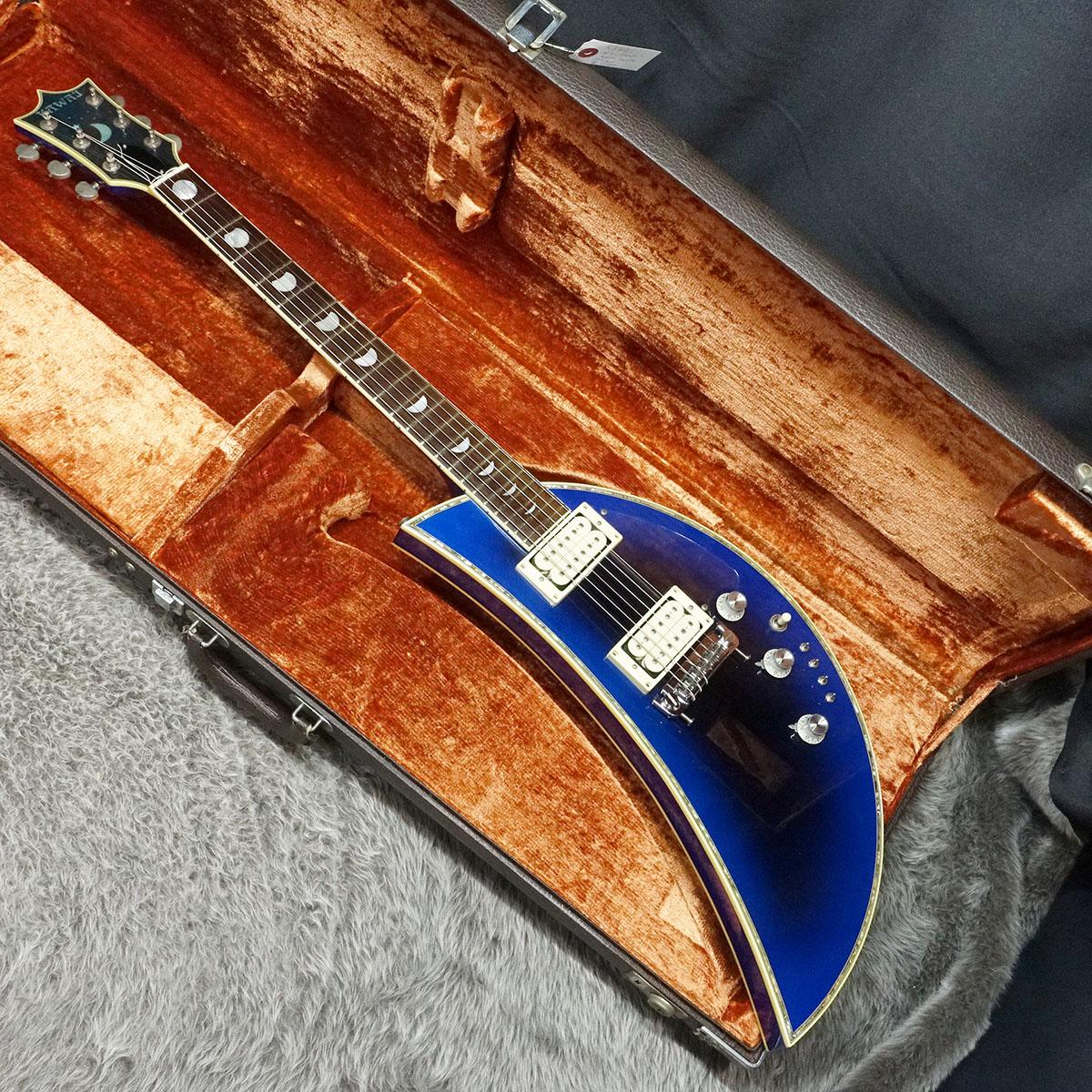 月を連想する流麗なシルエット、月の満ち欠けを見事に表現した指板インレイ、ロケットを模したトラスロッドカバー等、モデル名、コンセプトをそのまま具現化したギターです。