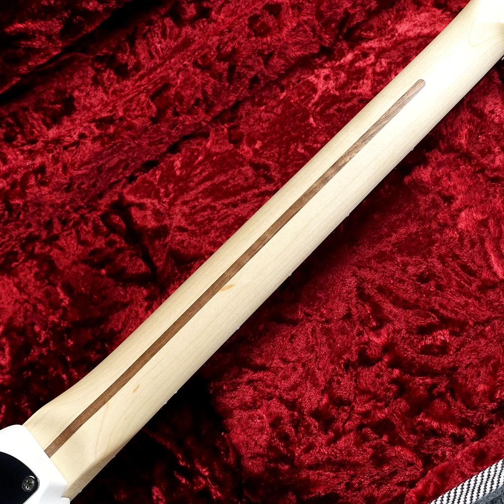 白×黒のコントラストがクールな本機種はフィット感の良いマホガニーボディにメイプルネック&エボニー指板という仕様。