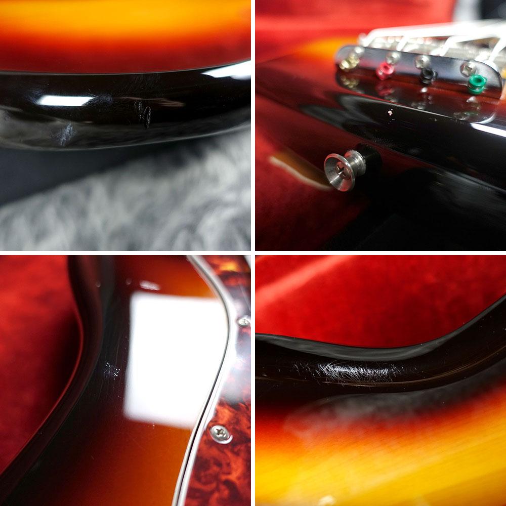 細かな擦り傷や打痕など年代相応の使用感に加え、長期間ハードケースで保管されていたのかボディ全体に塗装の反応痕のようなものがみられます。
