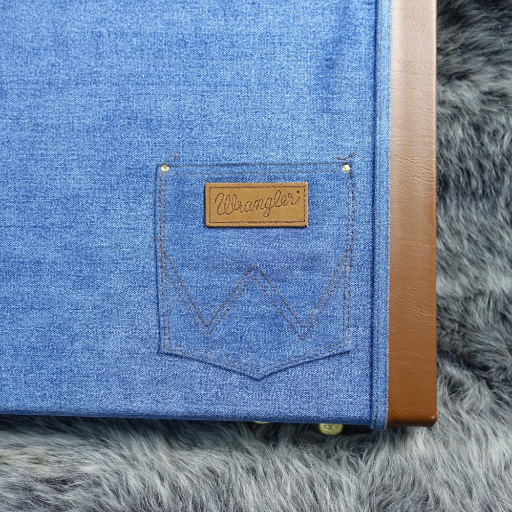 デニムでラッピングされた3-plyハードシェルウッドケースはWrangler独自の工夫が施されています。