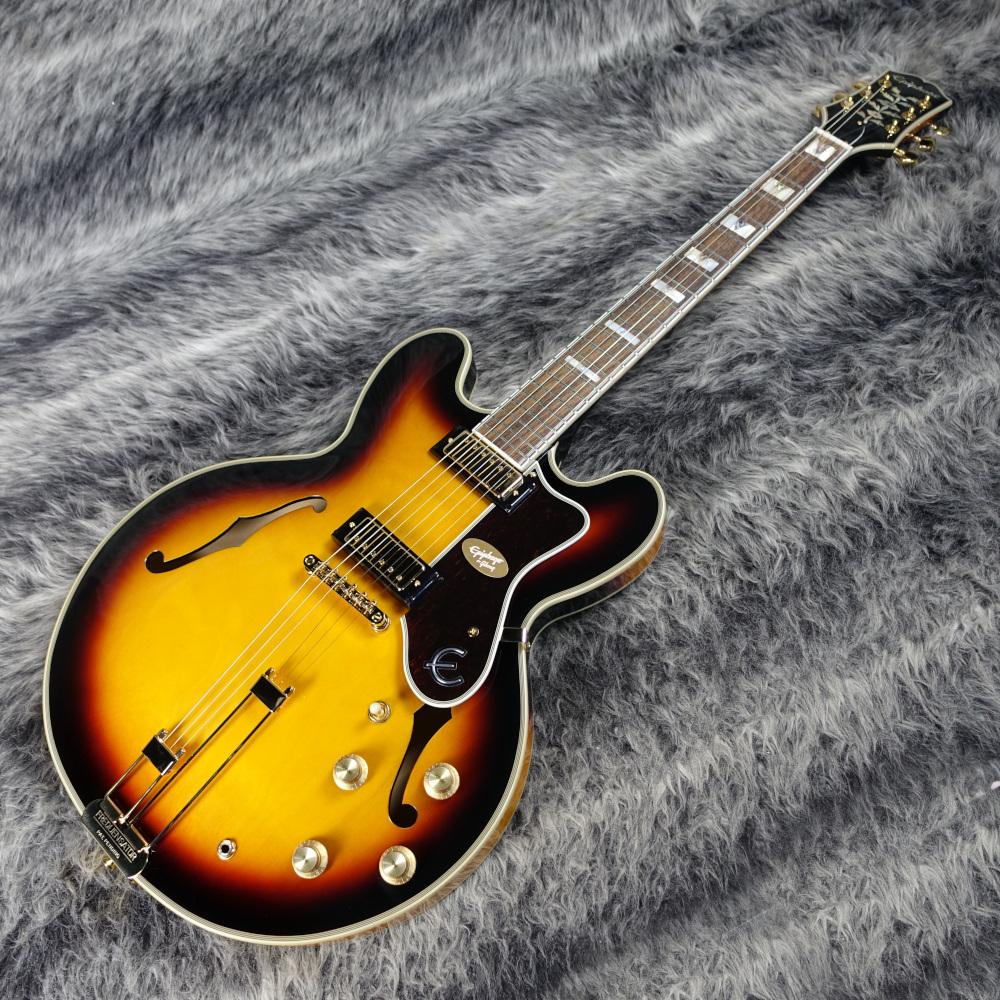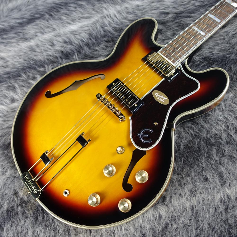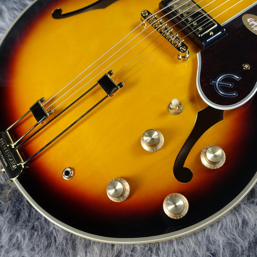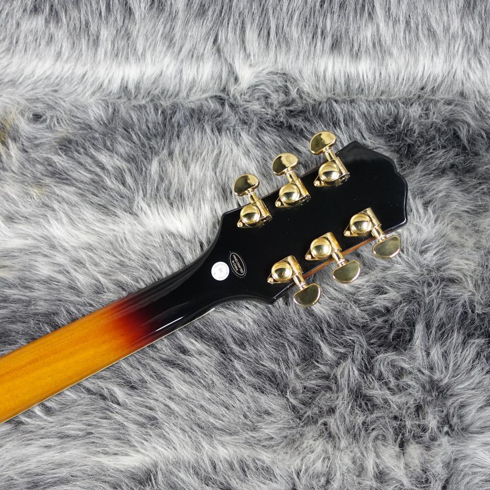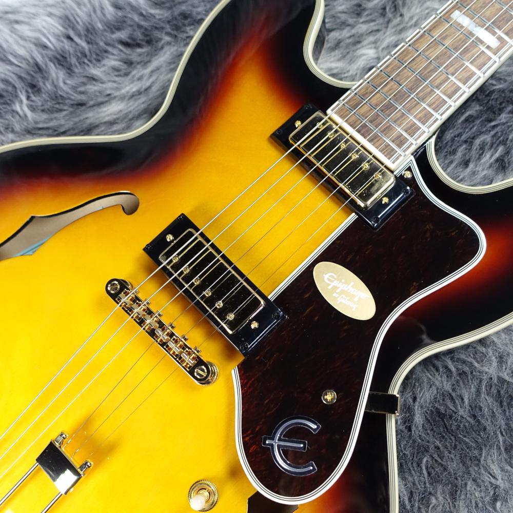 ヴィンテージスタイルのフリークエンセイタ―スプリットトラピーズテールピースを含むゴールド仕様のハードウェアが、エピフォンの伝説的モデルのシンプルで時代を超越するルックスに美しさが生まれます。