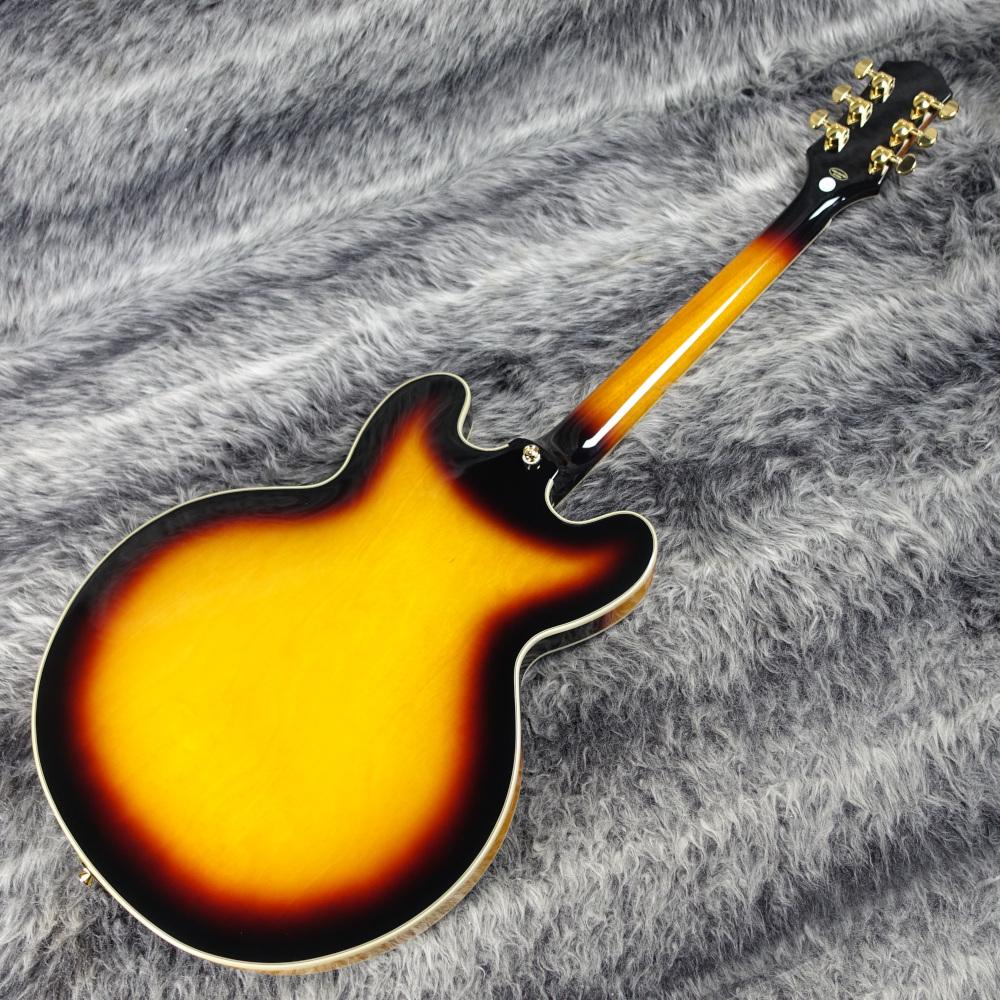 レイヤードメイプルから作られたセミホローボディが採用され、ハウリングに強いメイプルセンターブロックを備えています。