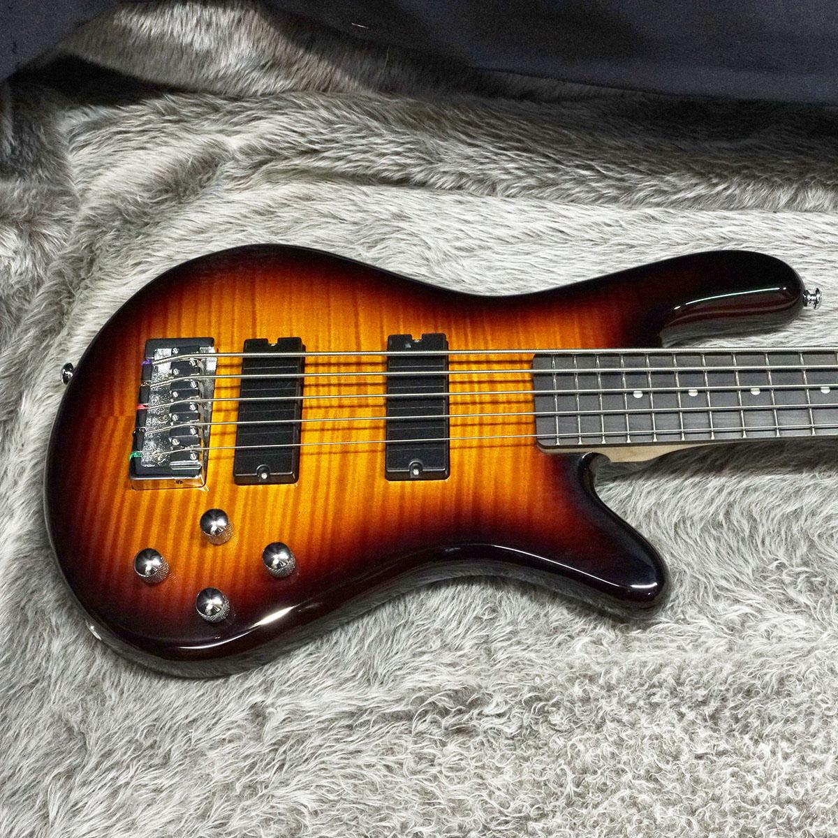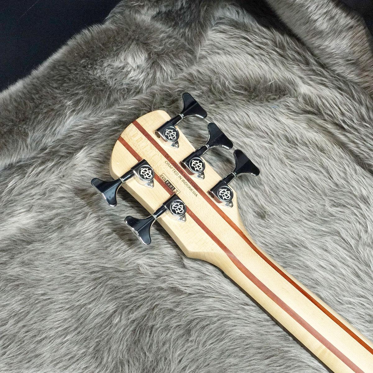Legend5 Standardは、Spector Bassの象徴であるNSボディ・デザインをすべてのベーシストが手に取りやすい価格で実現したモデルです。体へのフィット感が非常に心地良いカーブド・ボディには、ライトウェイト・ソリッドアッシュとラミネート・フレイムメイプルトップが採用されています。ネックはメイプルとパドゥーク(インドカリン)の5ピース、24フレットのアマラ・エボニー指板を採用し、演奏性の高いテーパード・シェイプに成形されています。また、タイトなイントネーションとパフォーマンスをもたらすHi-massブリッジなどのプロフェッショナルなクロームハードウェアも備えています。特別にデザインされたオープンタイプのSpector P/Jスタイルスタイル ピックアップ はクリアでパンチのあるサウンドを出力し、±12dBのブースト/カットが可能なTrebleとBassのアクティブ・2バンドEQとピックアップの組み合わせにより幅広いサウンドメイクを可能としています。