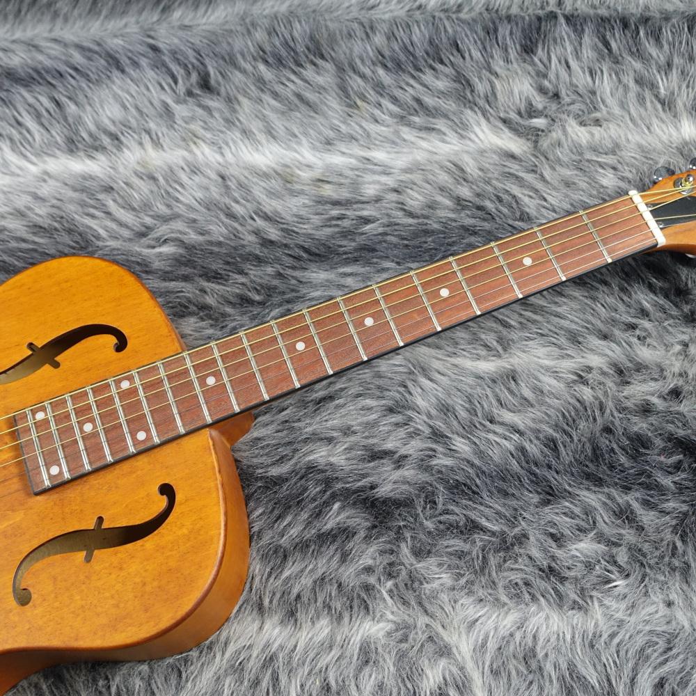 ボディに貼られた共鳴板により生音でも大音量かつ独特な響きが得られます。