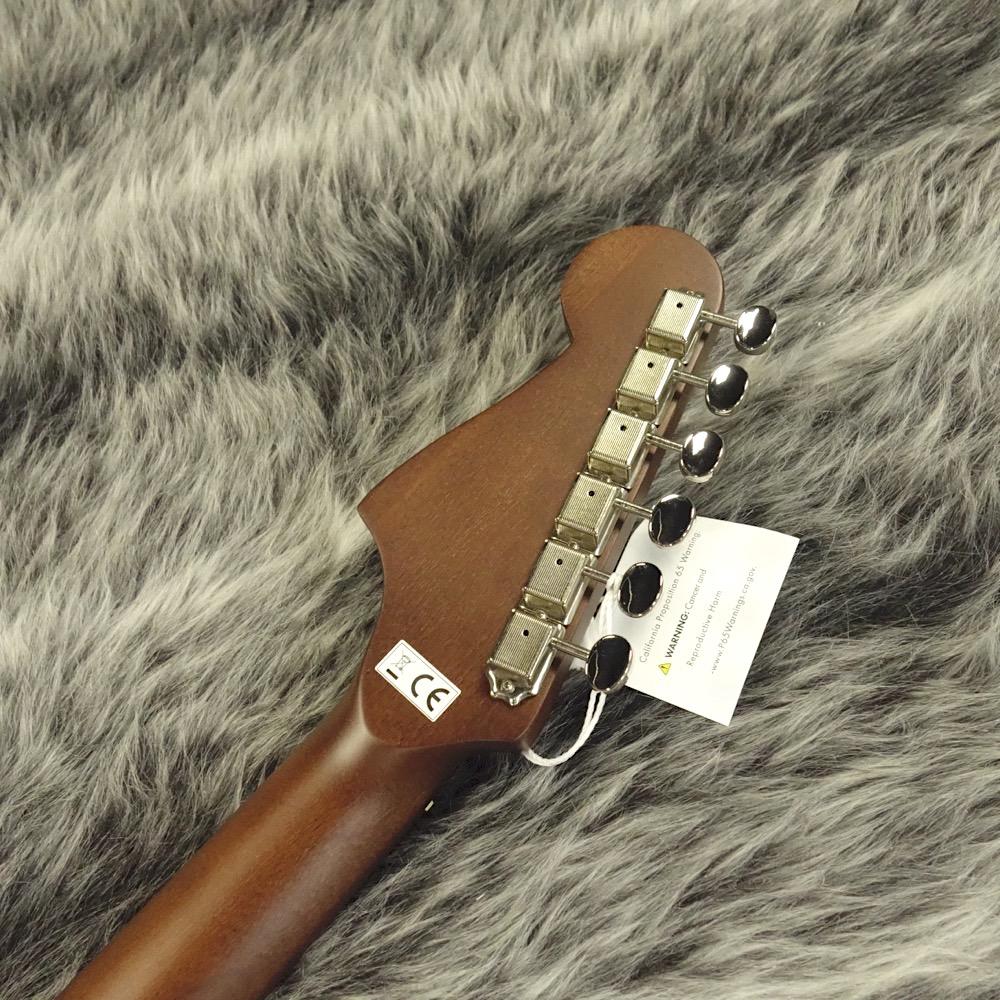 ストラトヘッドのショートスケール(弦長612mm)マホガニーネックにウォルナット指板という仕様。