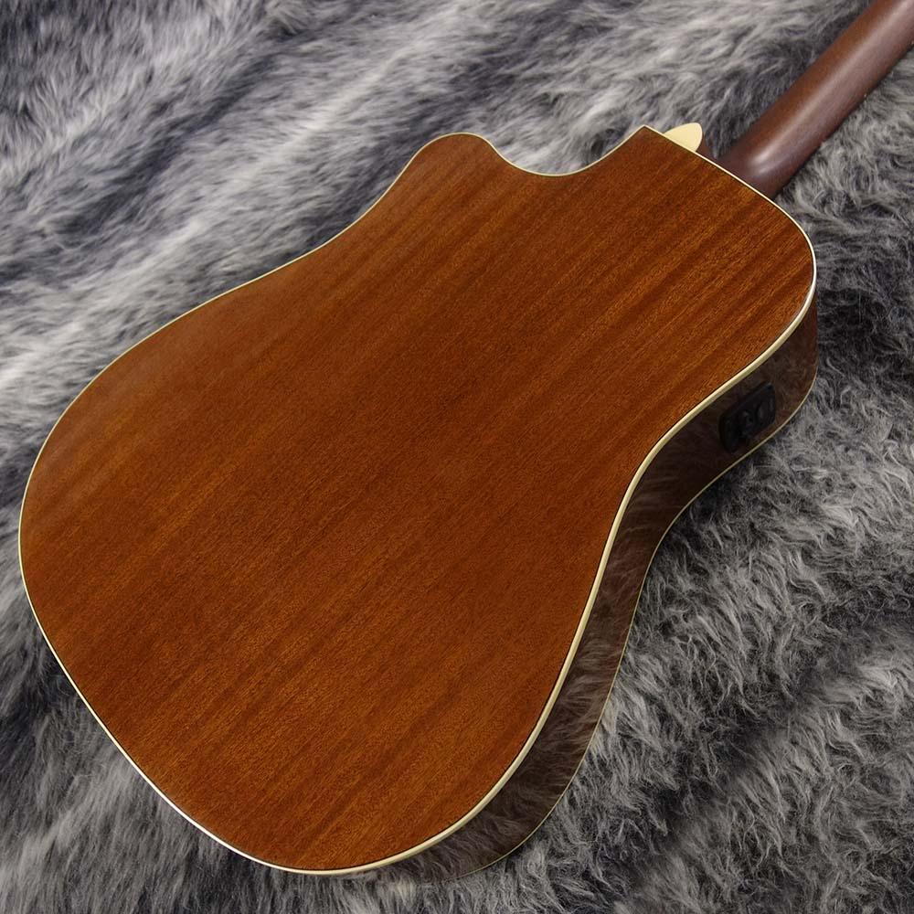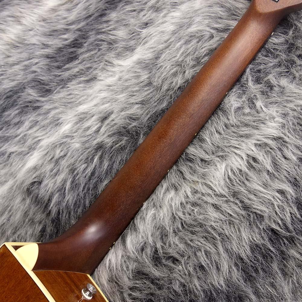 独自のスロープショルダーを持つ大振りなサイズのボディはボディはトップにスプルース単板、サイド&バックにマホガニーを使用したカッタウェイデザイン。