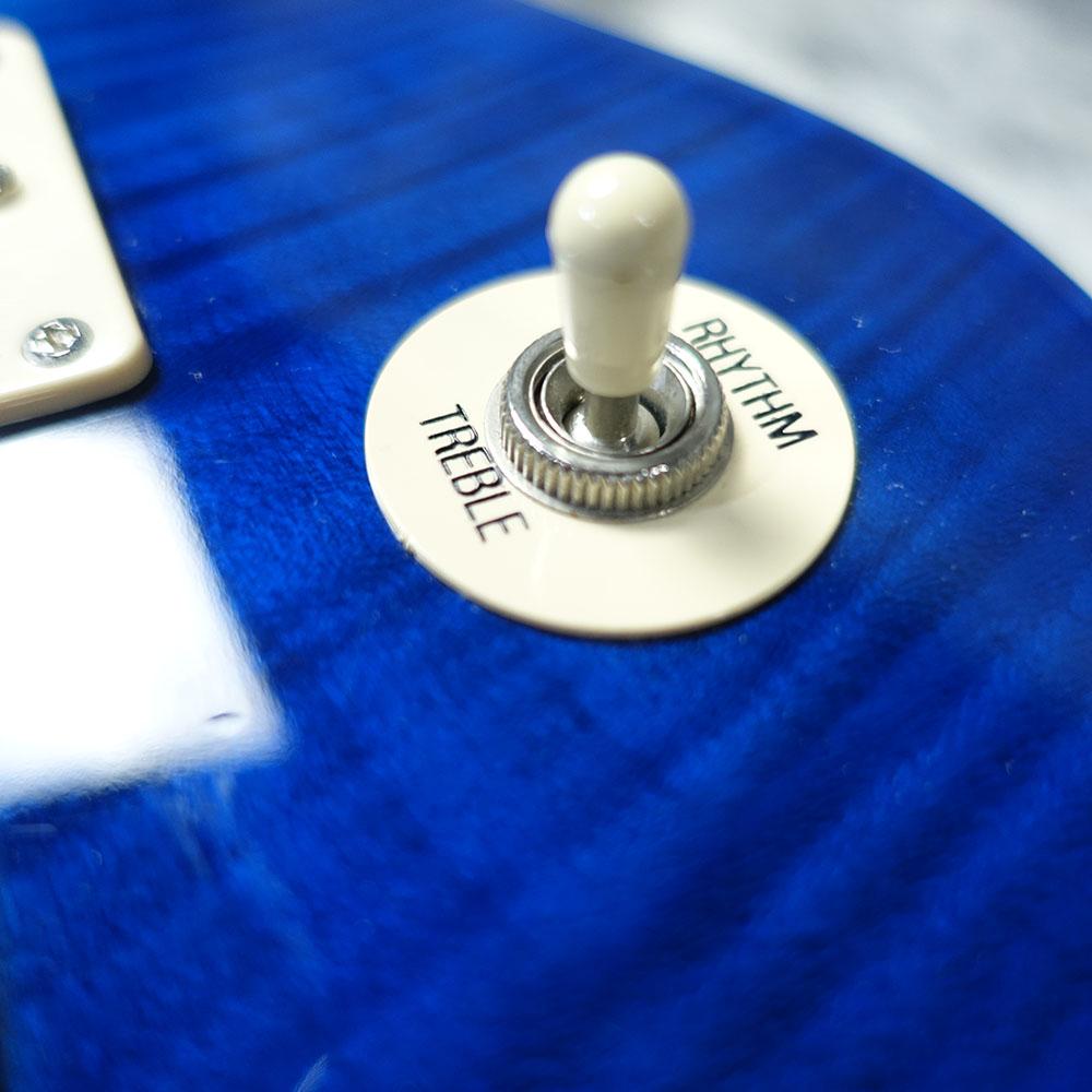 トグルスイッチをRHYTHMでフロント、TREBLEでリア、真ん中でフロントとリアのピックアップに変更できます。