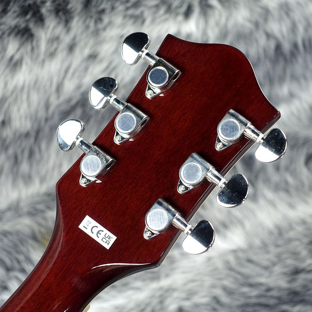 本機種はチェンバード・センターブロックを採用したセミアコモデルで薄型でありながらも豊かな箱鳴り感を演出。
