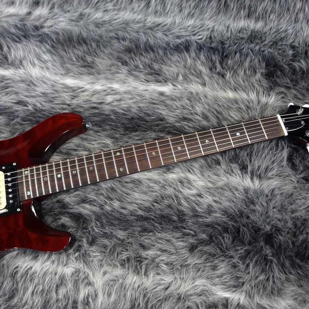 ボディはキルテッドメイプルトップ/マホガニーバックにメイプルネックをセットネックジョイント。