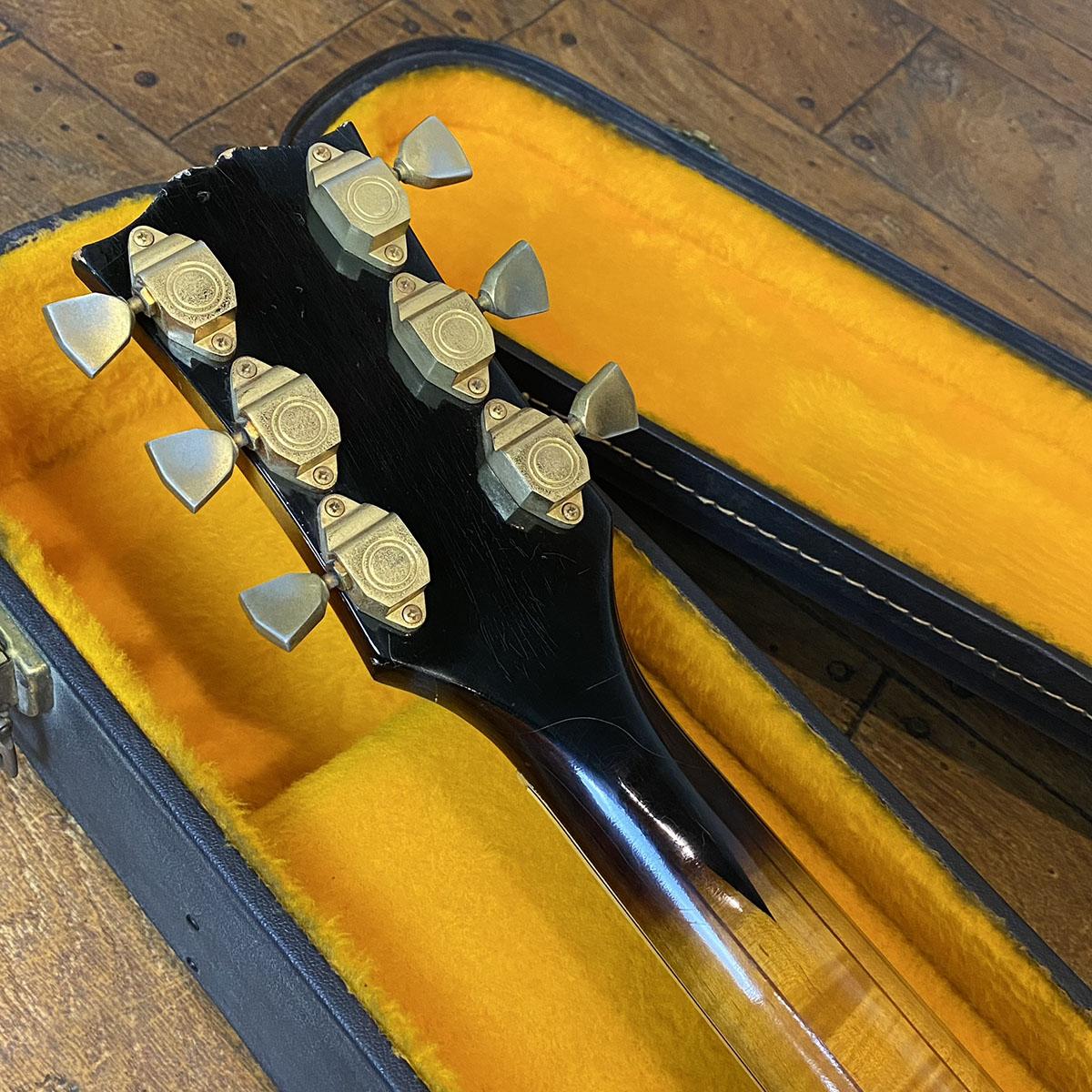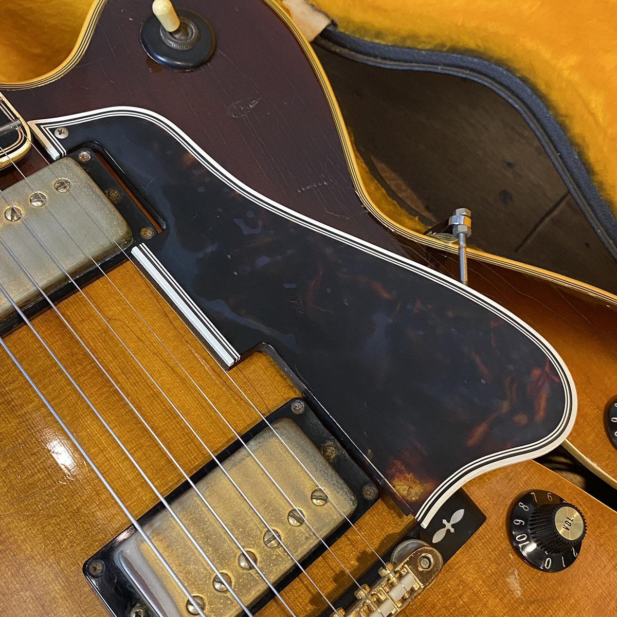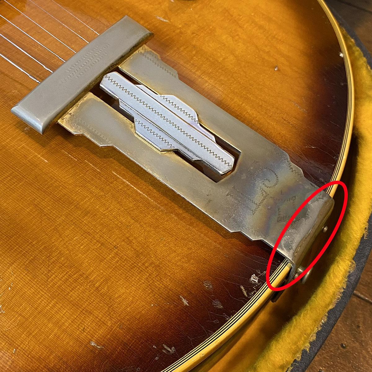 テイルピースには一度折れたものを溶接したような跡が見られます。ピックガードも交換されています。