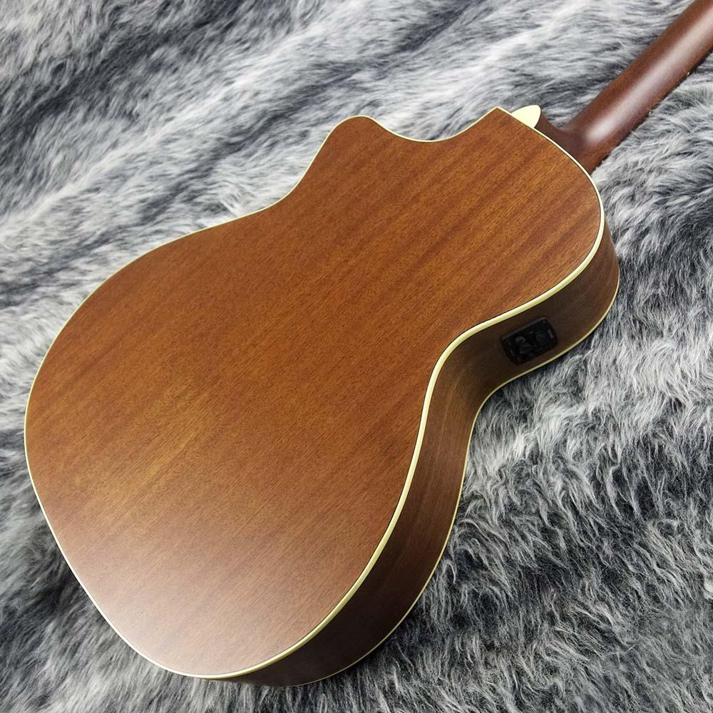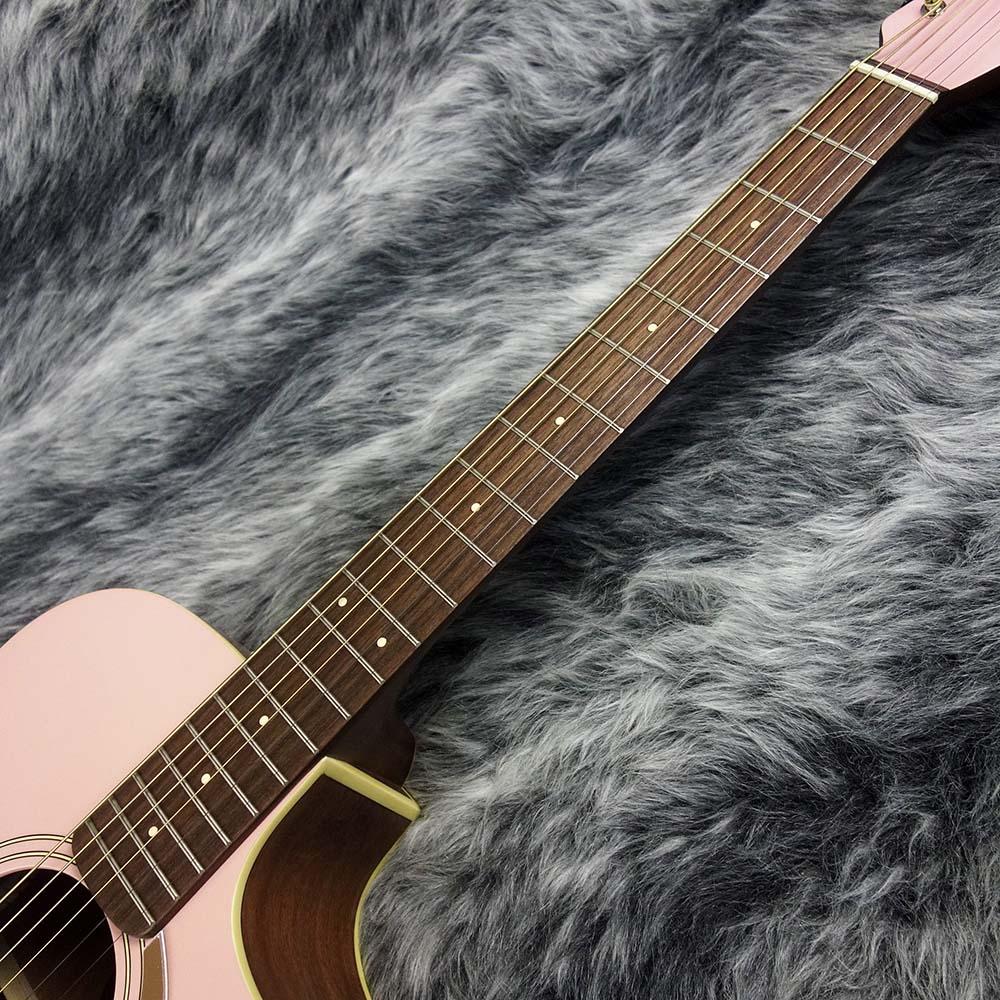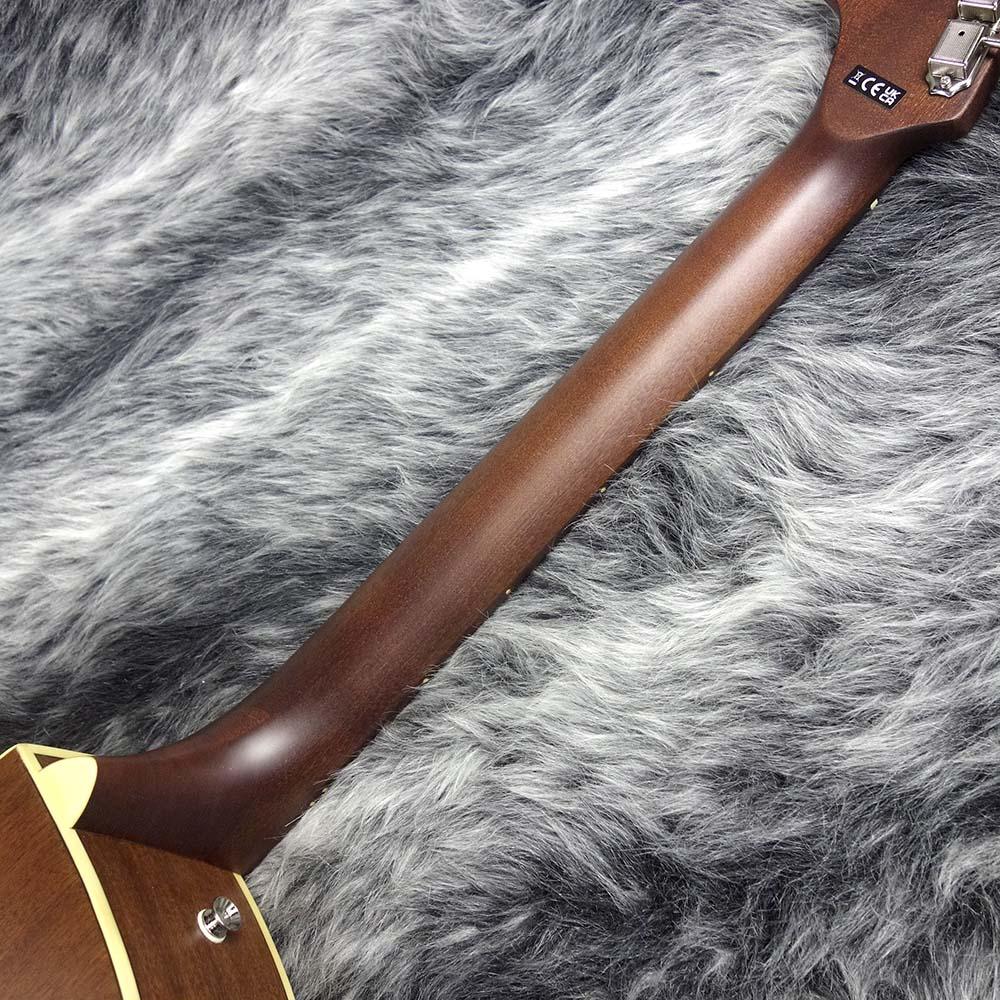 抱えやすいやや小ぶりなサイズのボディはトップにスプルース単板、サイド&バックにはマホガニーを使用したカッタウェイデザイン。