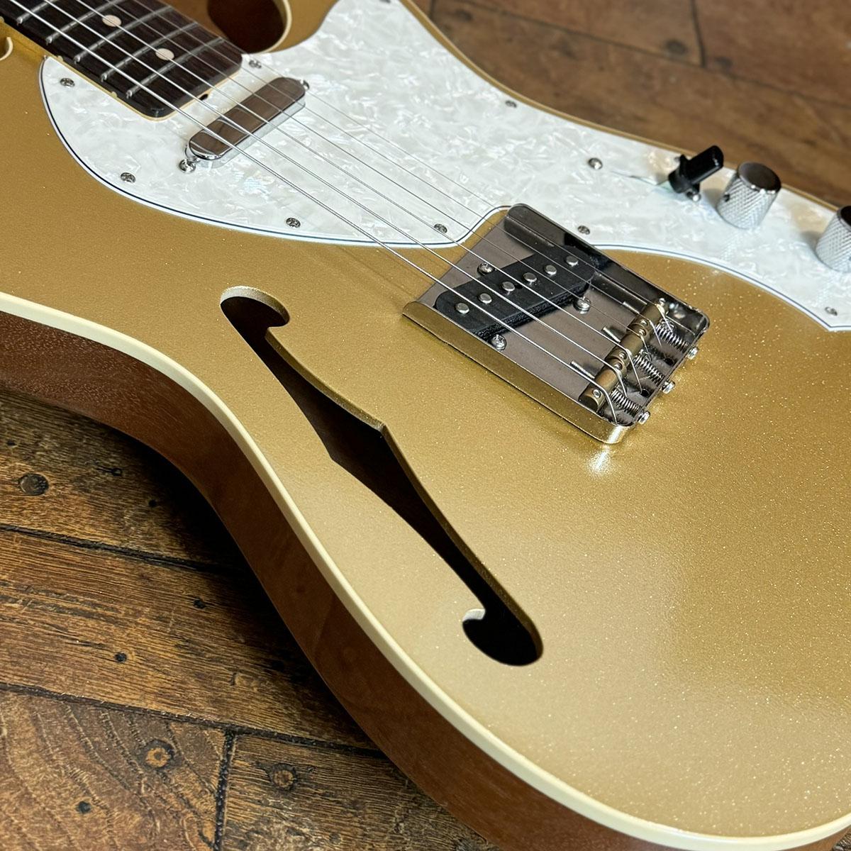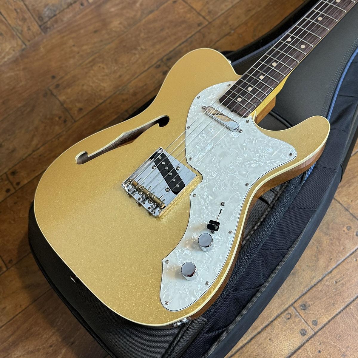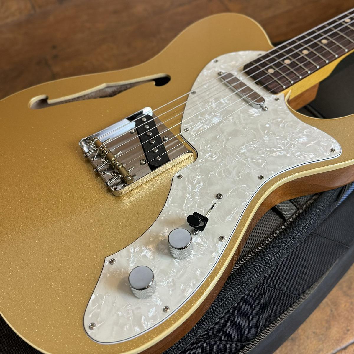 ホロウ構造のマホガニーボディを採用し、トップのみゴールドカラーでフィニッシュ。