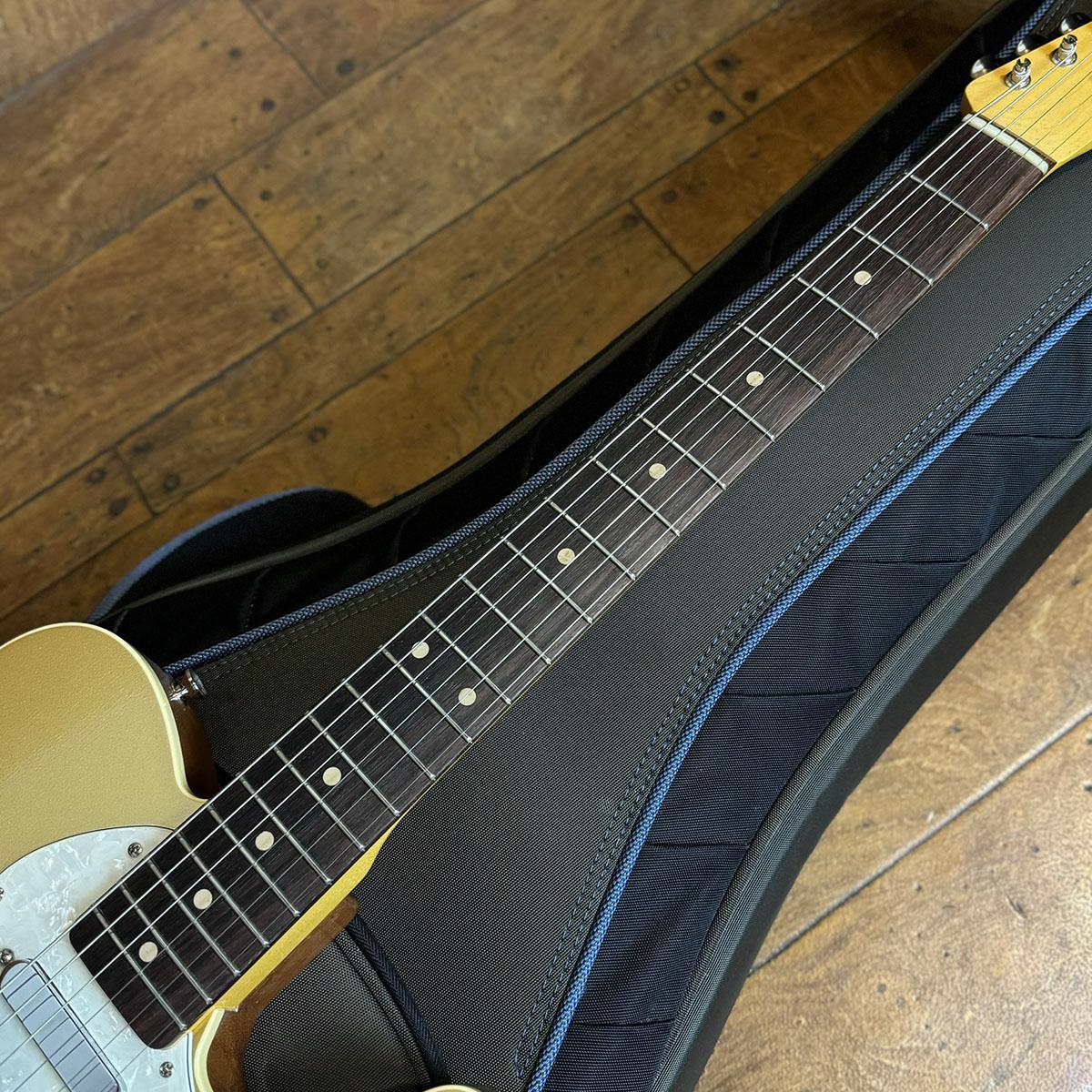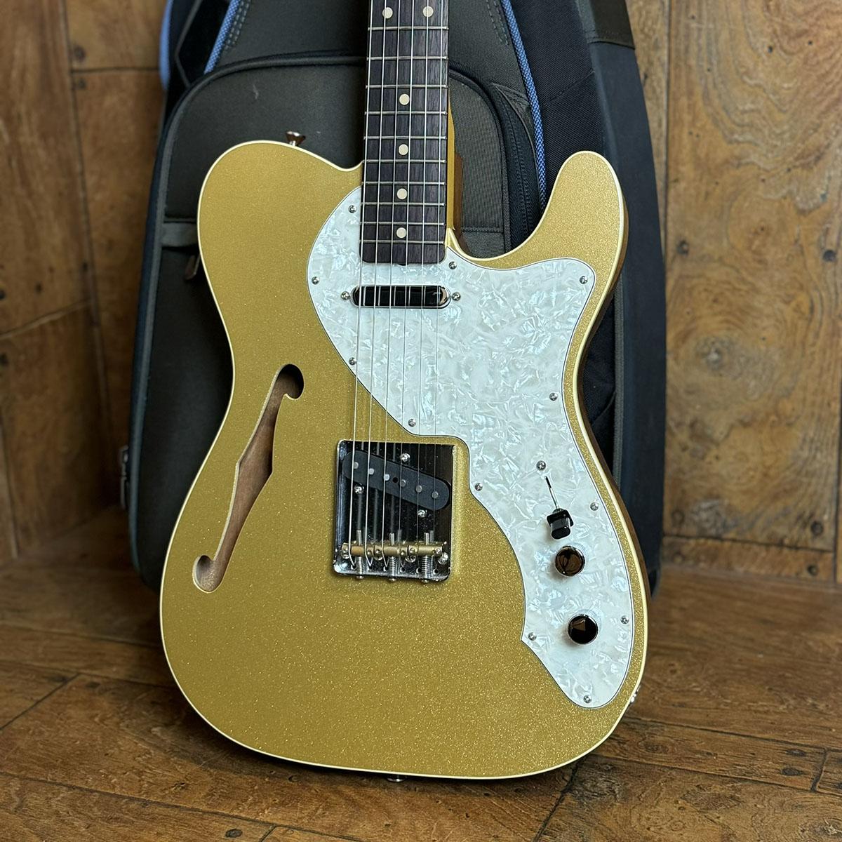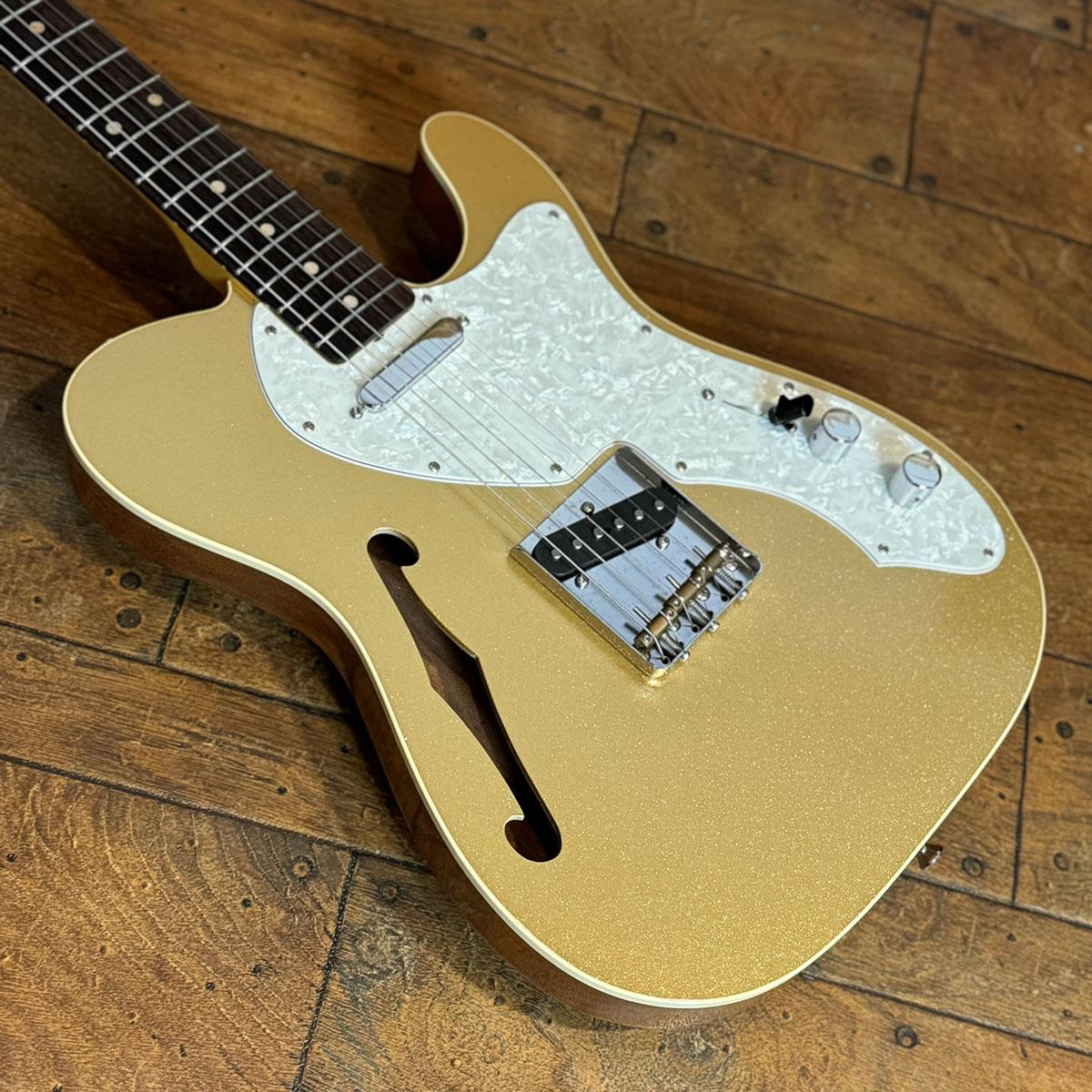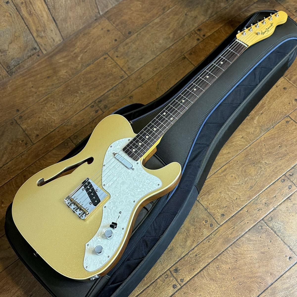 ホロウ構造のマホガニーボディを採用し、トップのみゴールドカラーでフィニッシュ。
