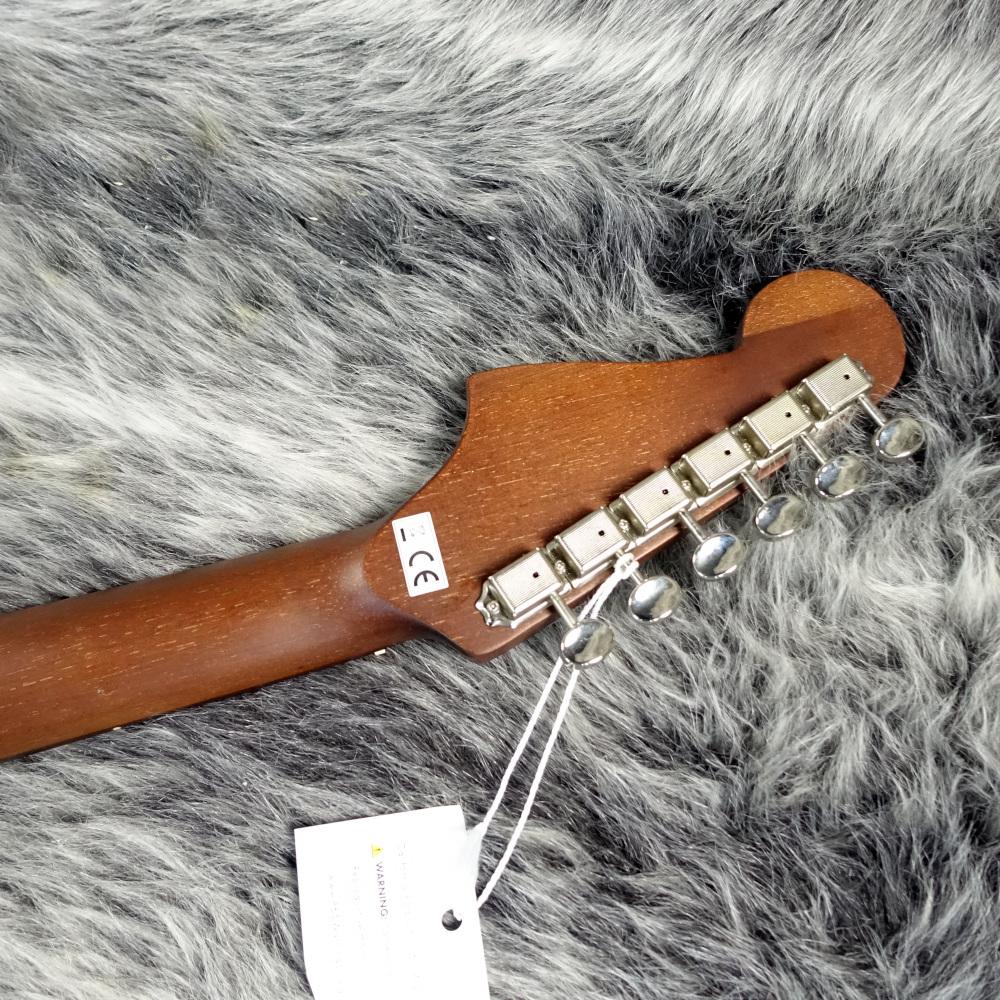 ストラトヘッドのショートスケール(弦長612mm)マホガニーネックにウォルナット指板という仕様。
