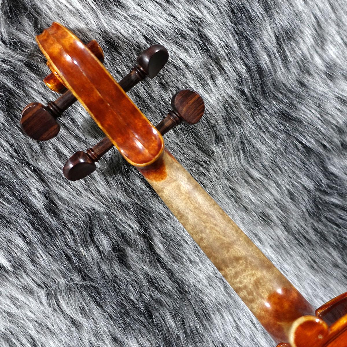 ストラディヴァリをモデルに音色を追求した本格ニスで仕上げられ、裏板の木目も非常に美しく雰囲気ある佇まいです。