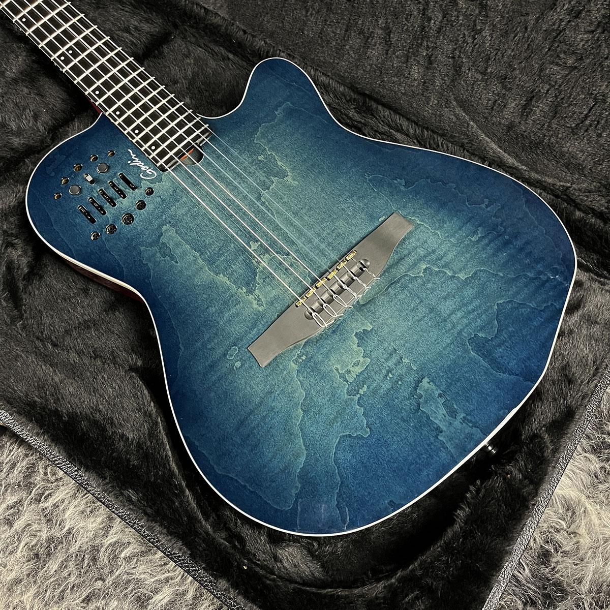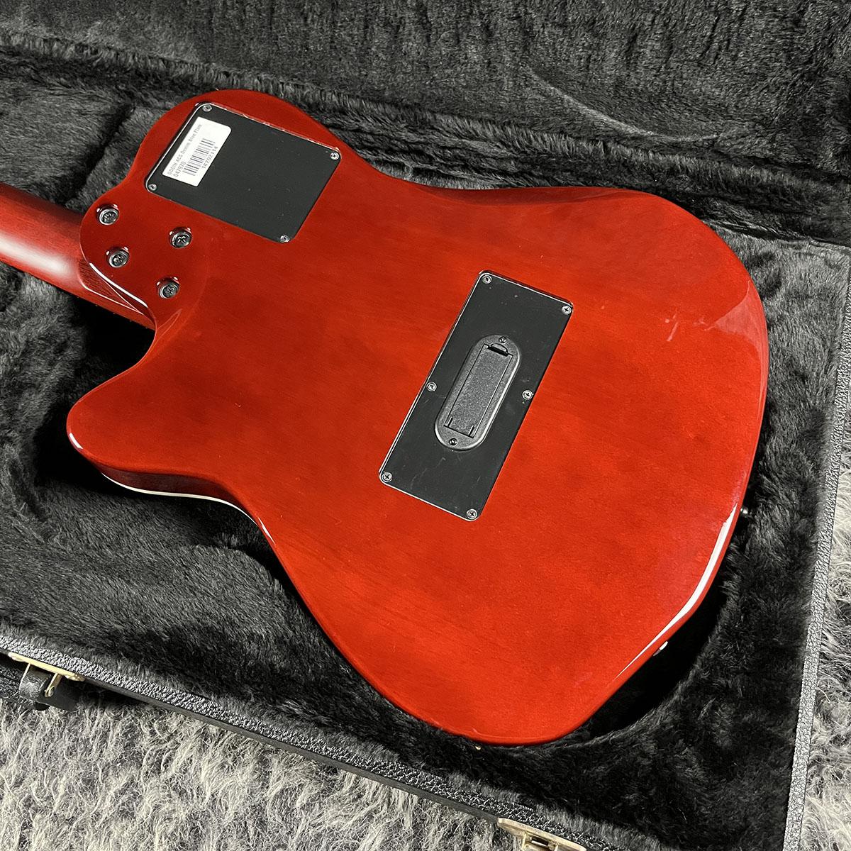 アコースティックをライブで使用するときに一番のストレスとなるハウリングを徹底的に無くし、よりエレキに近い感覚でプレイしたいというギタリストの為に開発されたソリッドボディのエレガット。