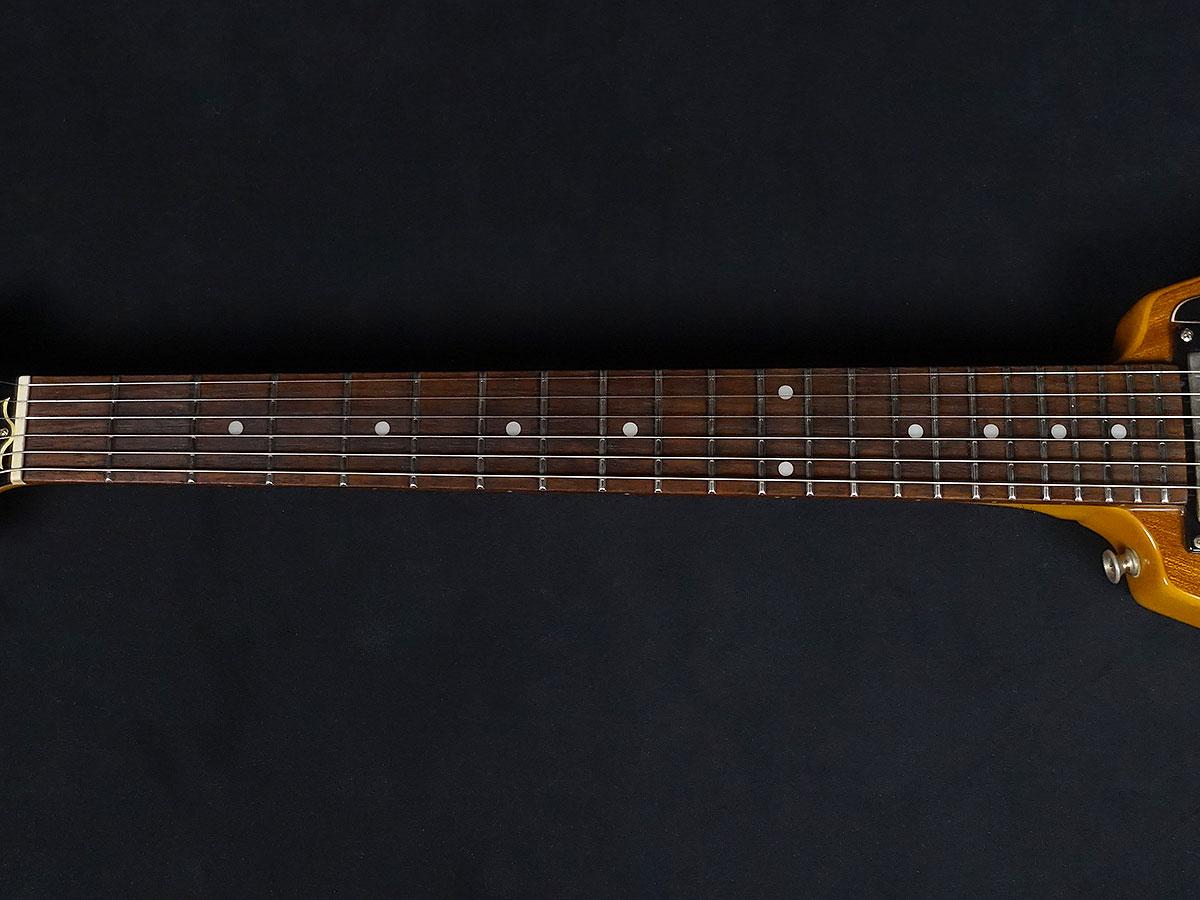 当時のカタログよりウッドマテリアルはコリーナボディ、マホガニーネック、ローズ指板。(実機の木目から判断するに、ネック材はメイプル材と思われます。)