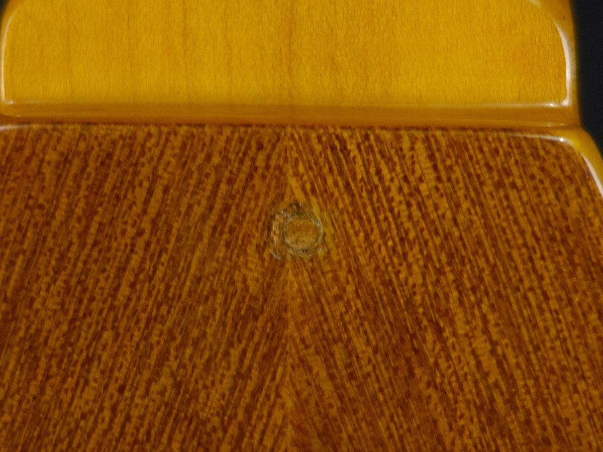 ※元のトラスロッドカバー下部のビス穴、元のペグ用のビス穴、下のピックガードのビス穴はそのままになっており、現在のトラスロッドカバー下部のビスはダミーです。