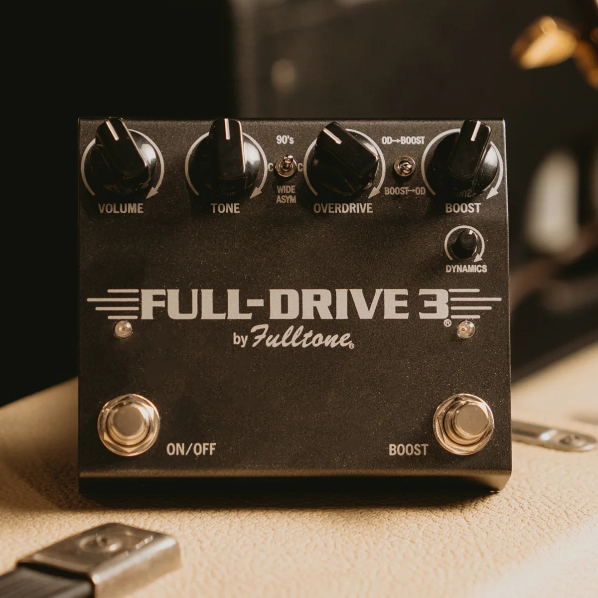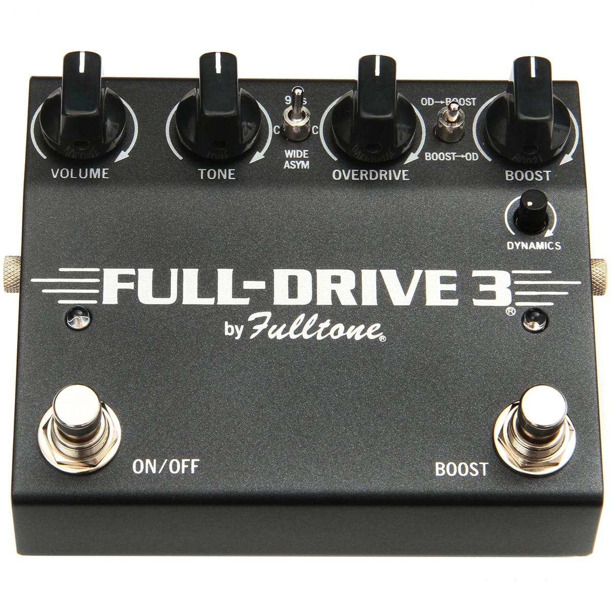 BOOSTチャンネルのDYNAMICSノブ(Fulltone独自のゲルマニウム・ダイオード・リミッター回路)を上げると、音の感触が変化し、アンプの入力をオーバーロードさせるトランジェント・スパイクが抑えられます。
