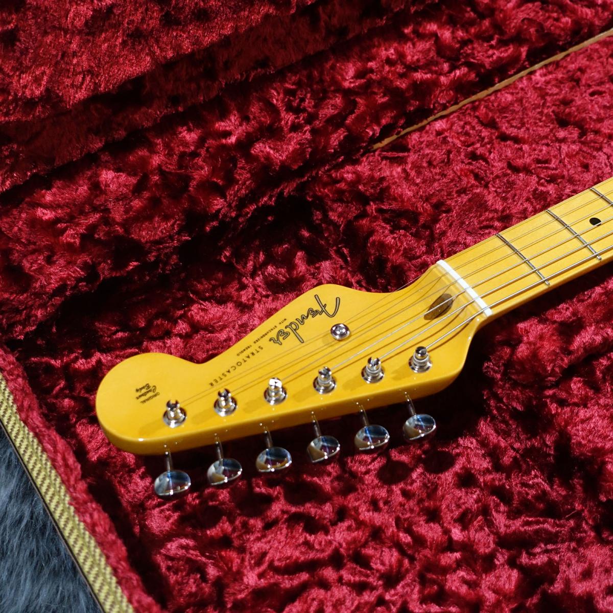 70th Anniversary 1954 Stratocasterは、伝説的なギターアイコンが70年前に誕生した出来事を記念するモデルです。ニトロセルロースラッカーで仕上げられた2ピースアッシュボディは、ヴィンテージの魅力に満ち溢れています。ヴィンテージフレットを採用した7.25インチラジアス指板の1ピースメイプルネックは、何十年もの間、プレイヤーに愛され続けてきたスムーズな演奏性を提供します。70th Anniversary 1954 Single-Coil Stratピックアップは、ストラトキャスターならではの煌めくクリーントーンから、艶かしいドライヴサウンドまでの幅広いサウンドを奏でます。その他、コールドロールドスチールブロックとベンドスチールサドルを備えた、ヴィンテージ仕様を忠実に再現したシンクロナイズドトレモロ、Fender Deluxeチューニングマシン、年代に忠実なピックアップカバー、スイッチチップ、コントロールノブを採用した1-plyピックガードといったディテールをフィーチャーしています。付属のヴィンテージスタイルツイードケースには、当時のケースキャンディが含まれてきます。オリジナルストラトキャスターのエッセンスを凝縮したこの限定モデルは、コレクターやストラト愛好家にとってマストアイテムとなることでしょう。
