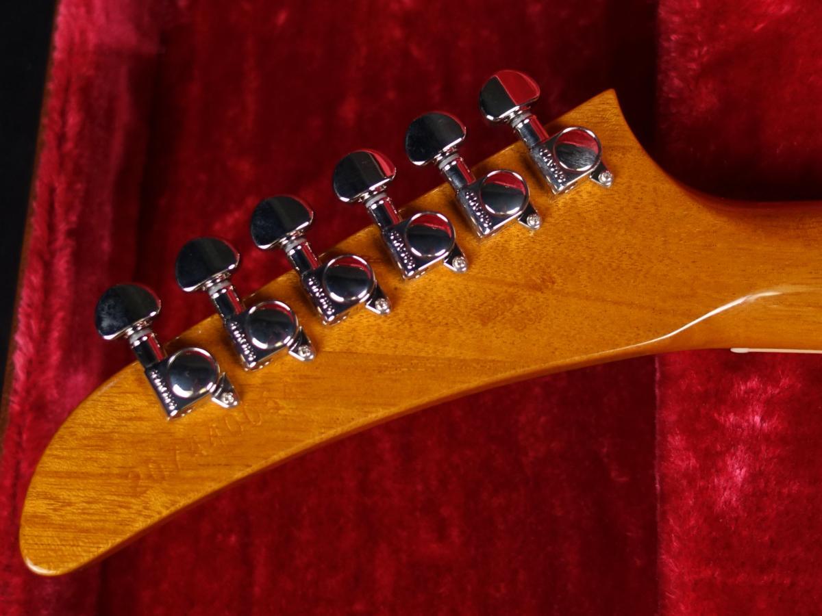 ウッドマテリアルはマホガニー・ボディ、シミタール・ヘッドストック、ローズウッド・キャップのスリムテーパーマホガニー・ネックの22フレットを採用。