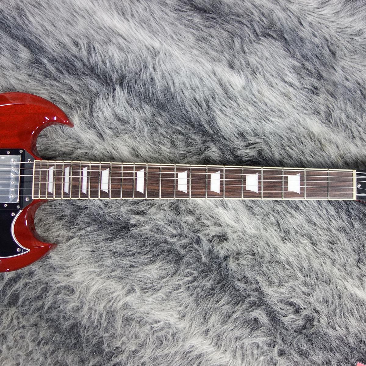 2ピースマホガニーボディ、1ピースマホガニーネック、ローズウッド指板という定番スペックを採用したオーソドックスなSGタイプ。