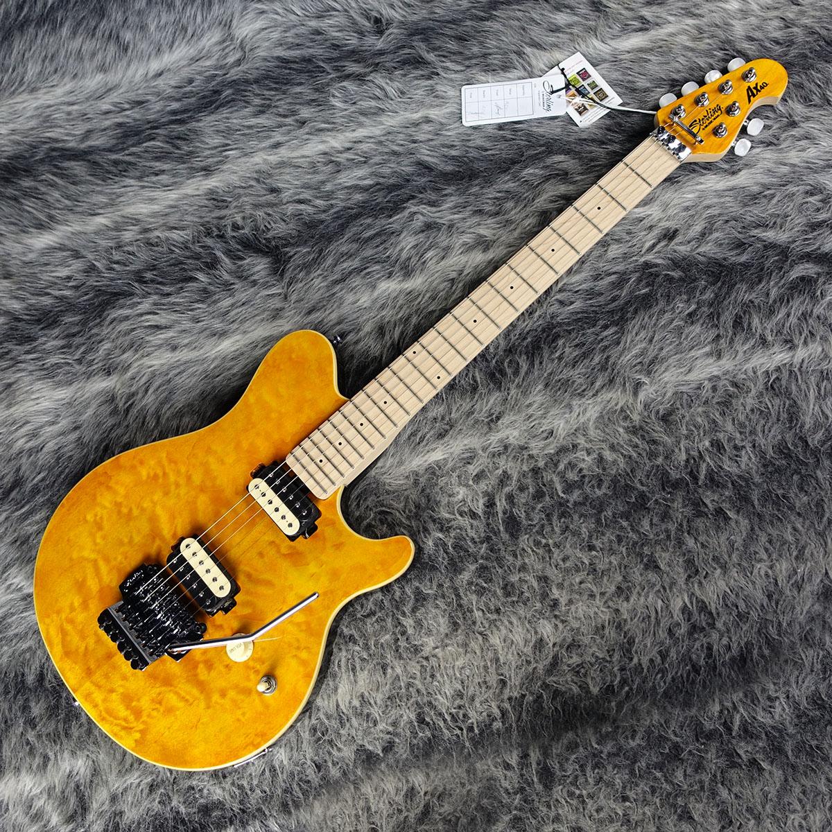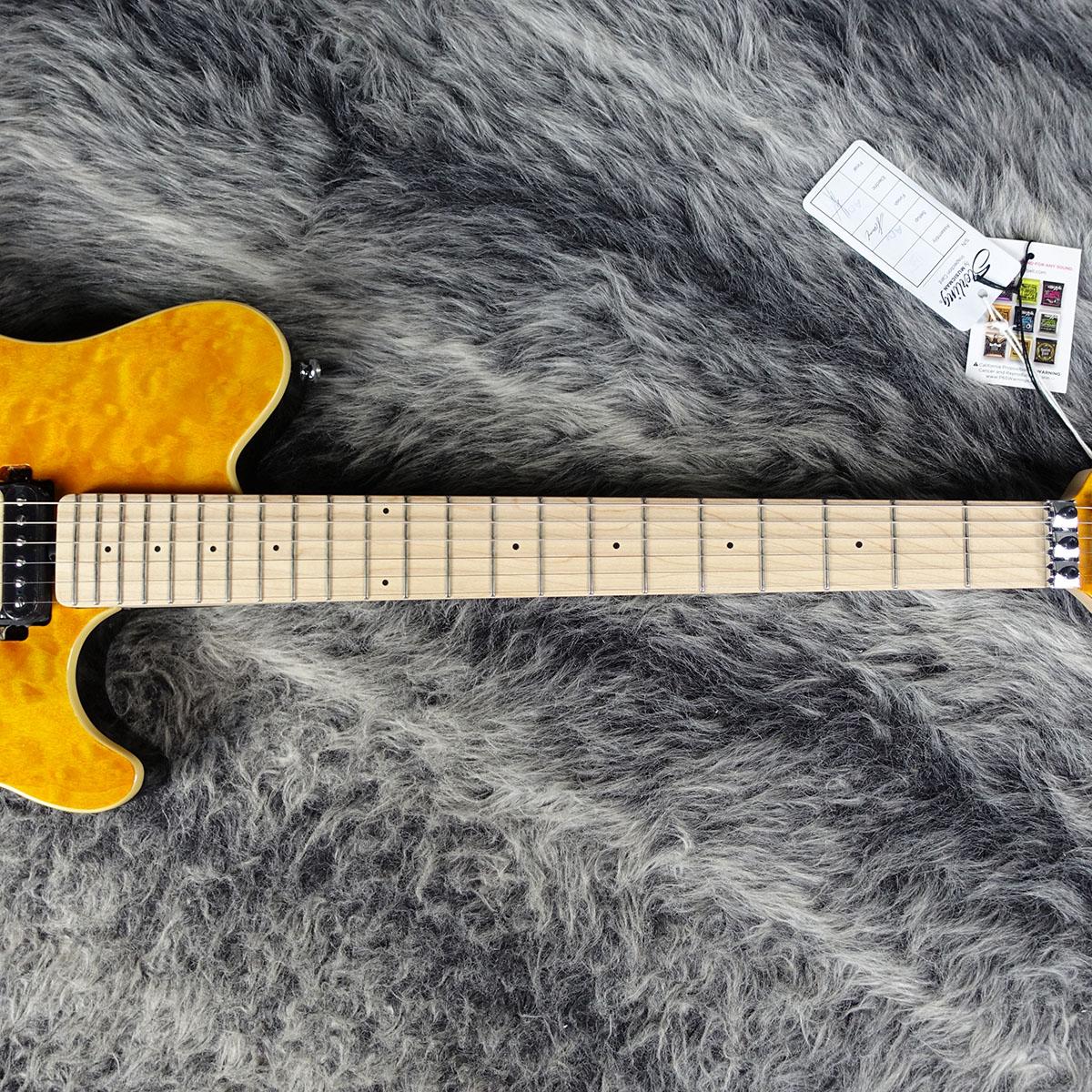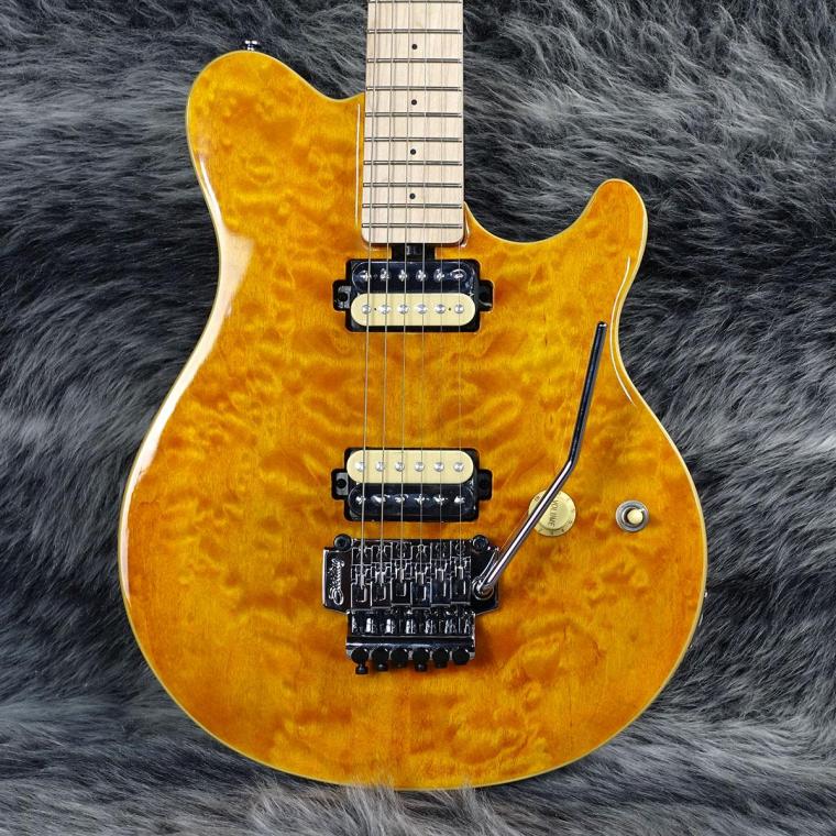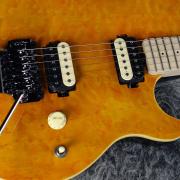 オリジナルのバスウッドボディに華やかなキルトメイプルをラミネートした華やかなルックス。