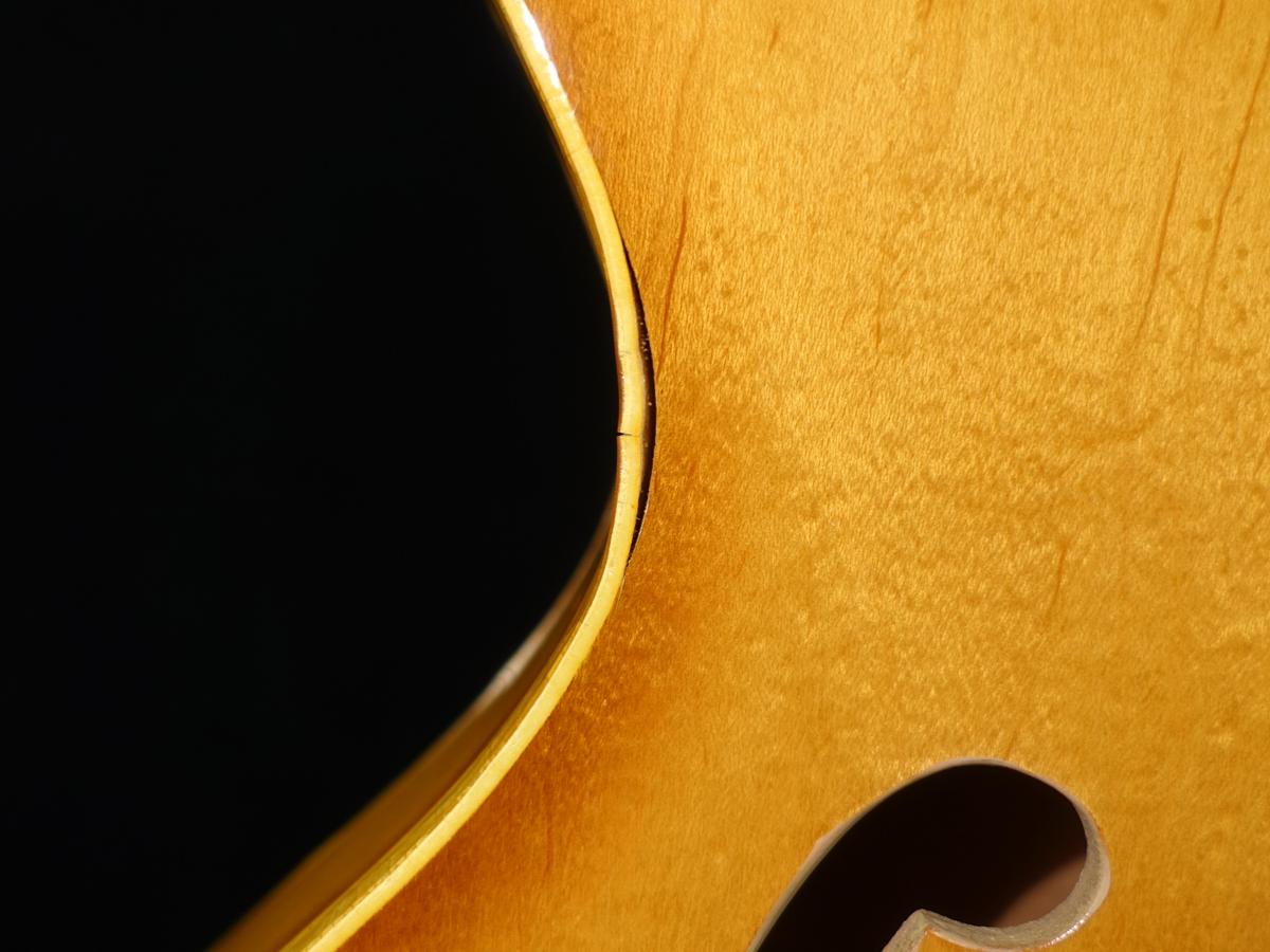 ボディはセンターブロック構造を備えたセミアコ仕様になっており、ほど良い箱鳴りのエアー感が得られ、メイプルならではのタイトでハリのある抜けの良いトーンをお楽しみいただけます。