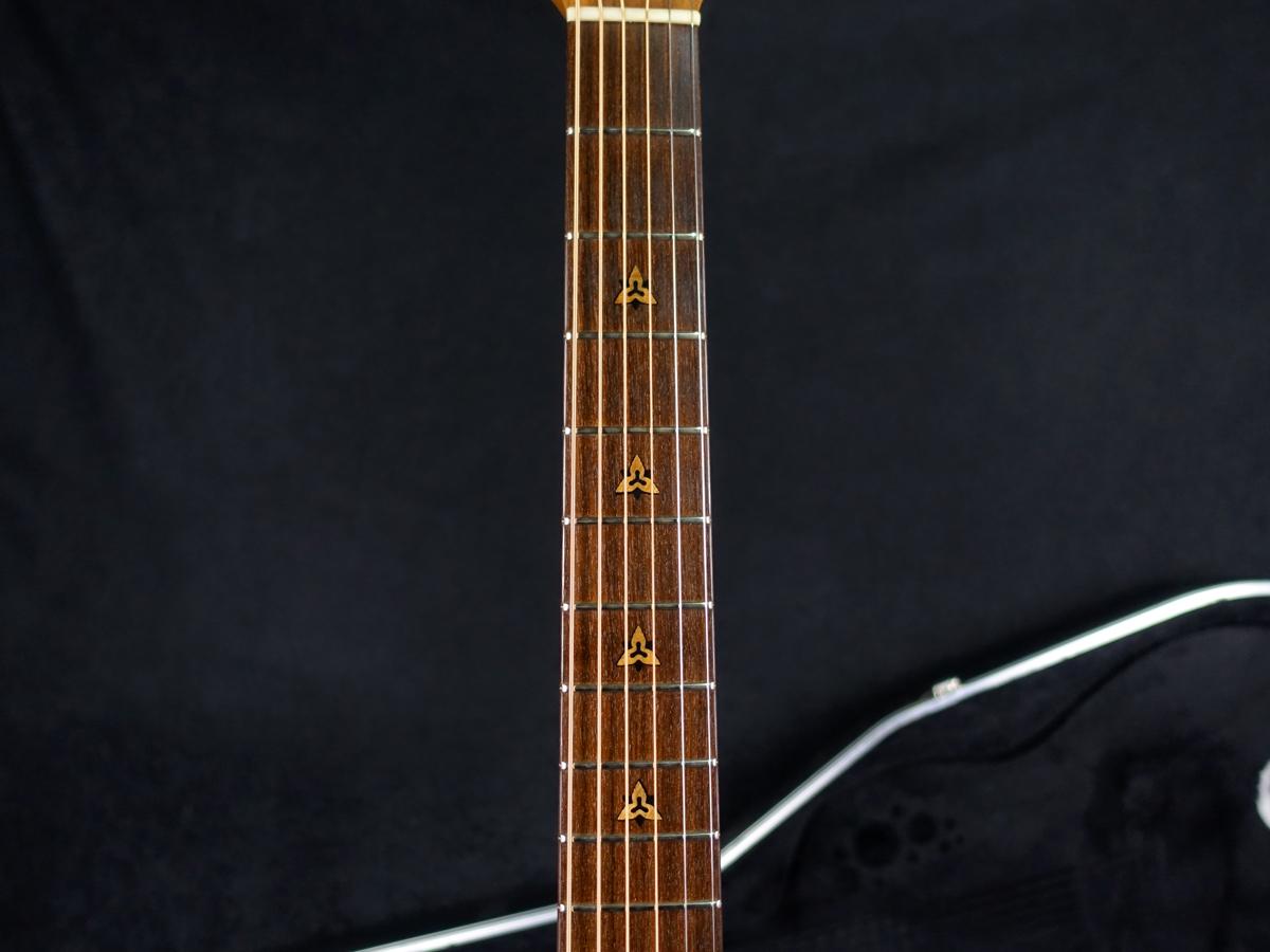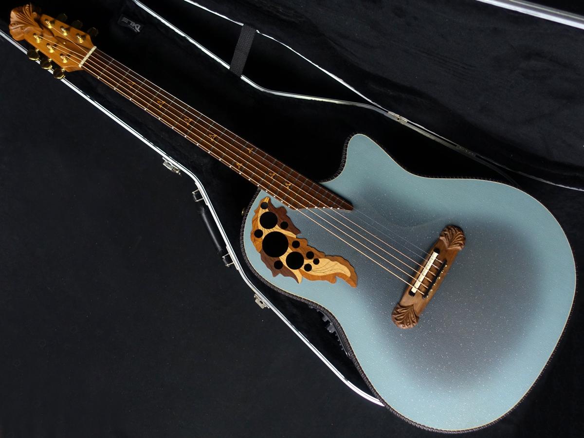 エポレットが施されたカーボンファイバートップ、リラコードによるラウンドボウルバック、ウォルナットネックを採用したAdamasでは王道のマテリアル。