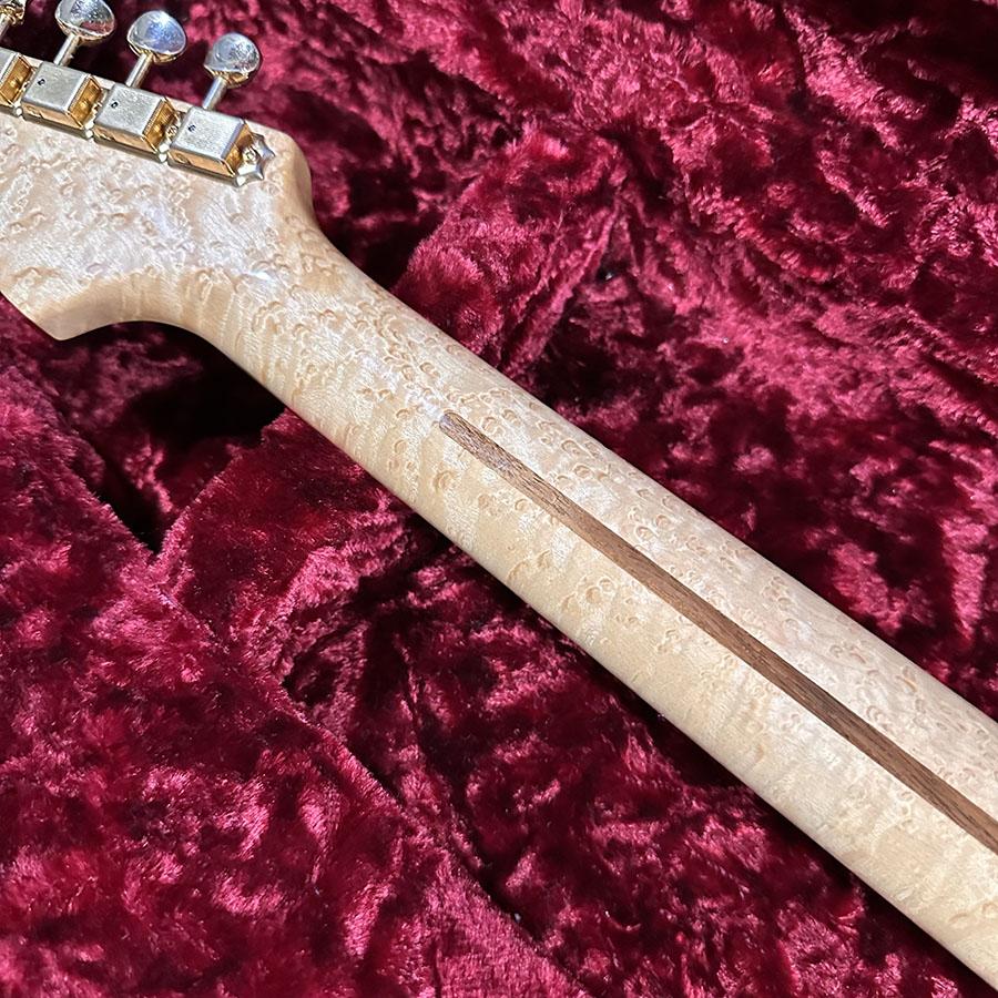 ボディには1Pアッシュ、ネックには極上の杢を楽しませてくれるバーズアイメイプルを使用。木目からも厳選された最上級の木材であることが伺えます。