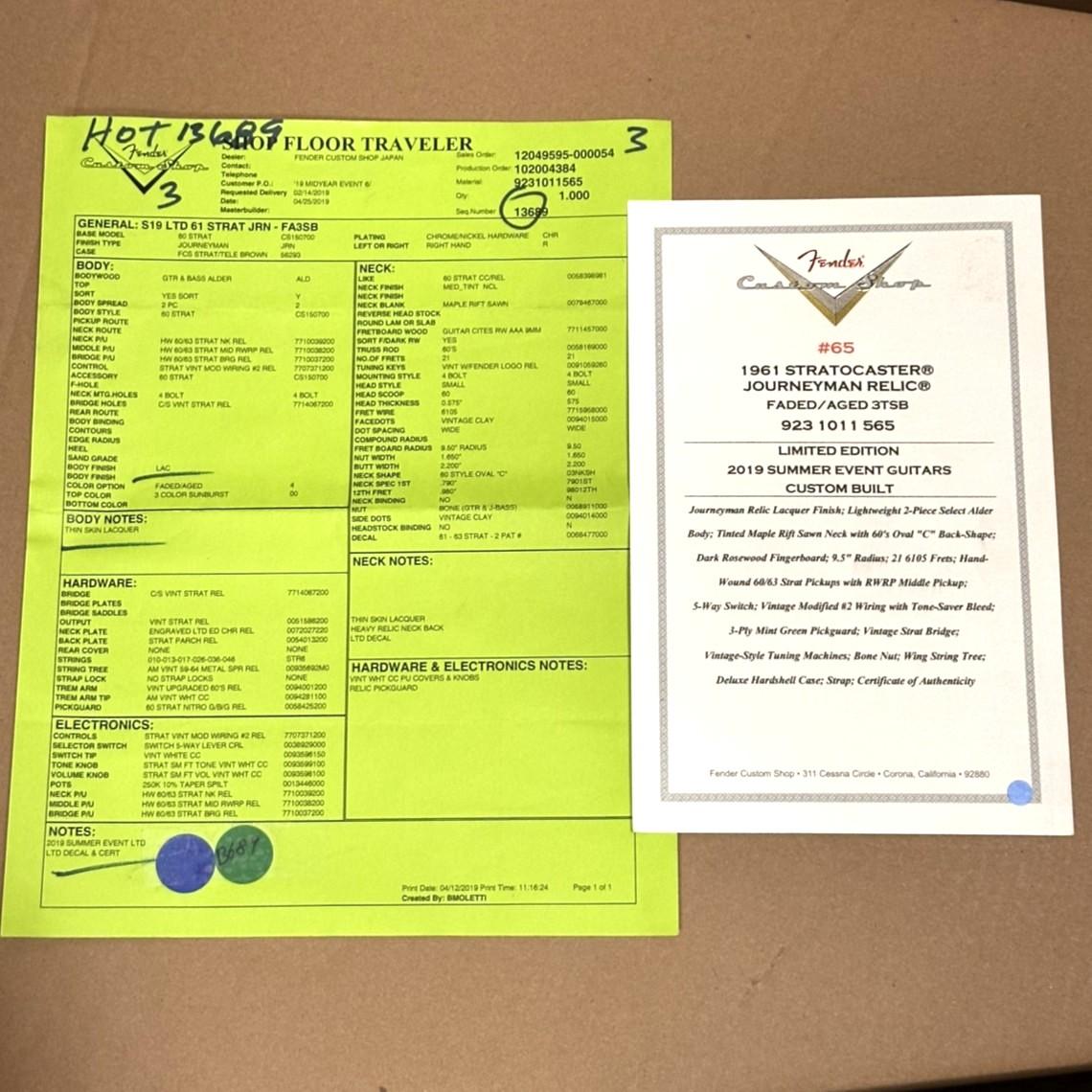 | モデル名 | Limited Edition 1961 Stratocaster Journeyman Relic Faded/Aged 3-Tone Sunburst |
