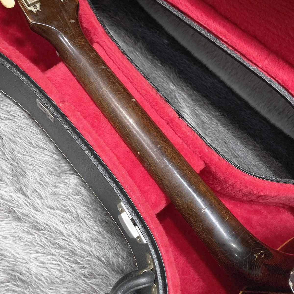 ピックガードも過去何度か変わっているようで、現在ついているものはオリジナルと少し形状が違いトップの色の差が見えている箇所もございます。指板脇付近にカッター傷のようなものも見えますが表面はラッカーが吹かれているのか全体の雰囲気はマッチしているように感じます。