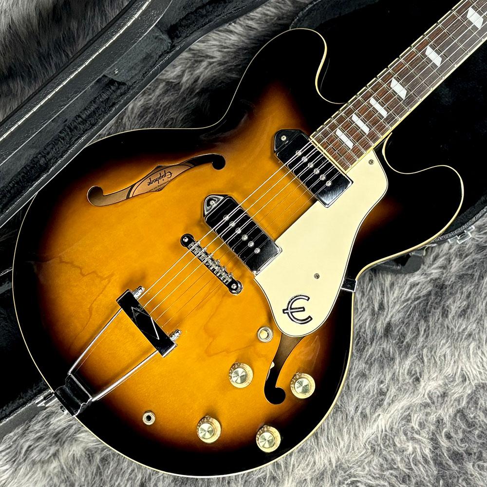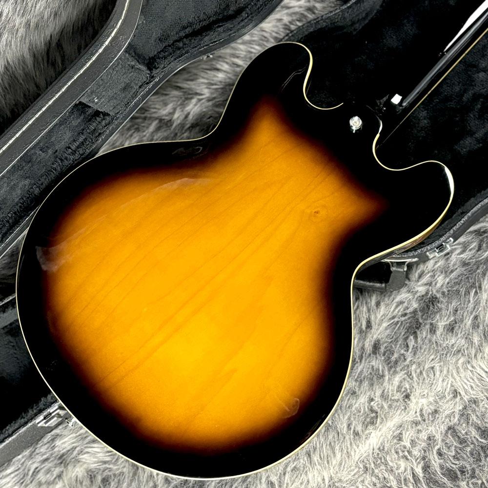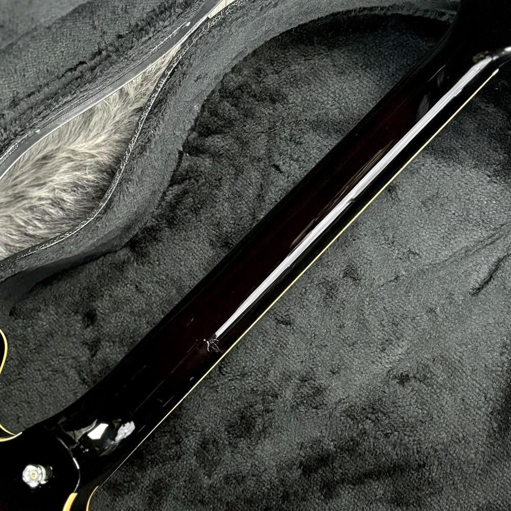 薄めのボディで一見セミアコに見えますが、センターブロックのないフルアコ構造で箱鳴り感の強いサウンド。