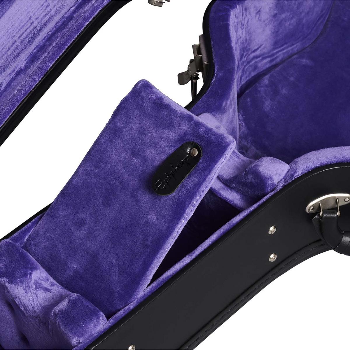 ヘッドストック上面ではマザーオブパールによるエピフォン・ロゴとスター・インレイが目を引きます。