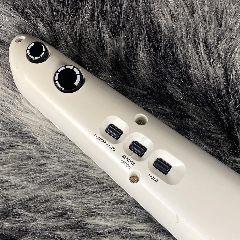 左手で握るグリップ部にはモジュレーションバーやリボンコントローラーなどが配置され、裏面にはホールドボタンやポルタメントボタン、ボリュームコントローラーなどが備わっておりスムーズな演奏表現が可能です。