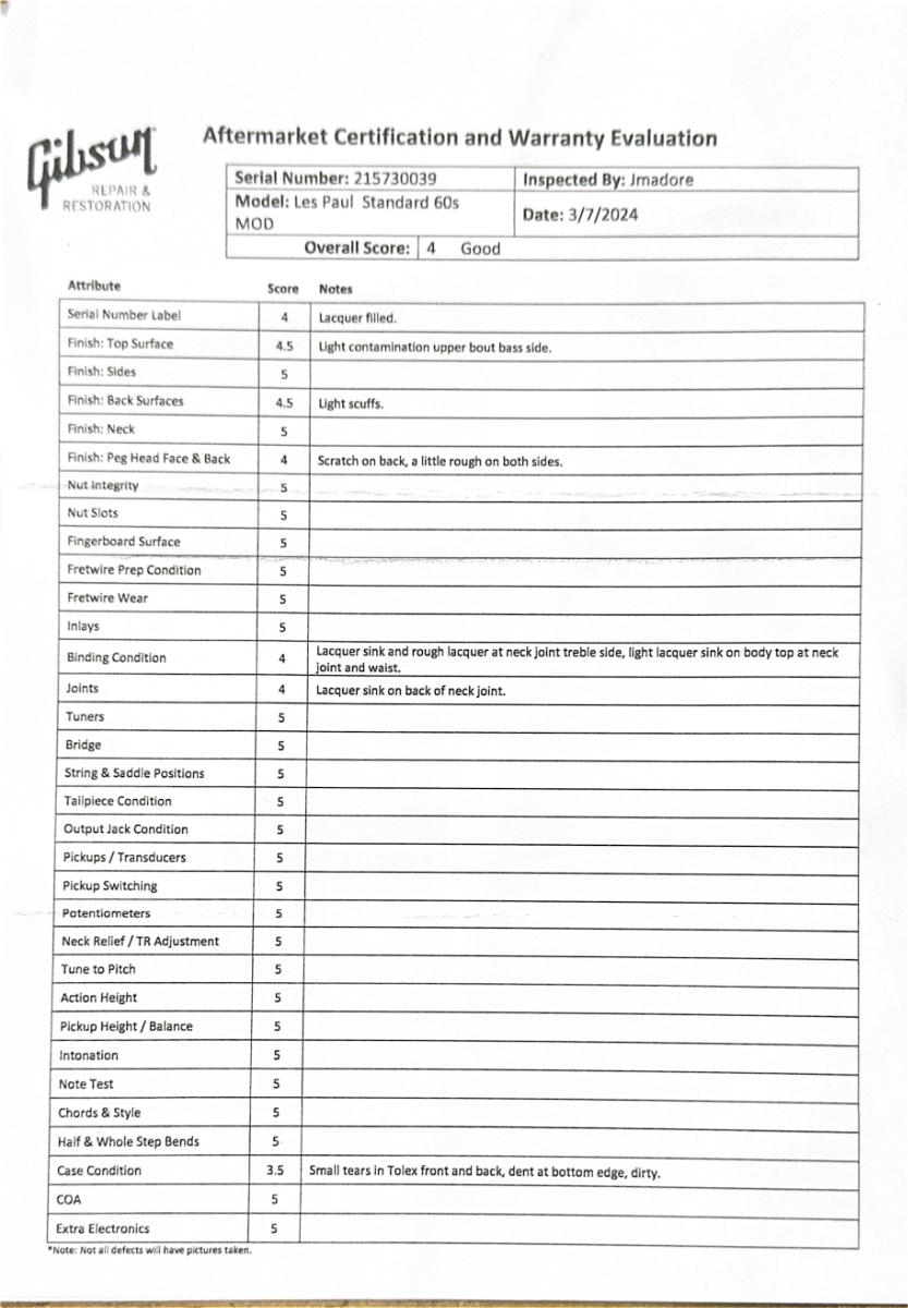 ・独自のギブソン限定保証となります。材料および製造工程上生じたとギブソンが判断した瑕疵については、 購入から2年間の保証が提供されます。
