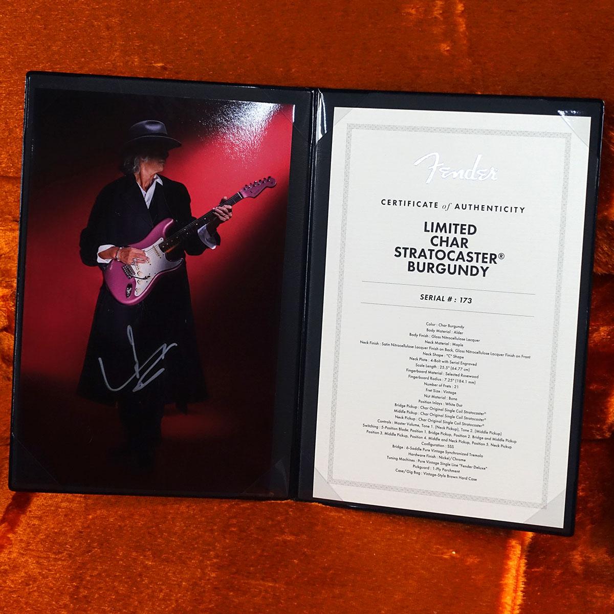 Limited Char Stratocaster BurgundyはCharのキャリアを代表するアイコン、1959年製のStratocasterを、本人実機を基に日本製で再現したシグネイチャーモデルです。