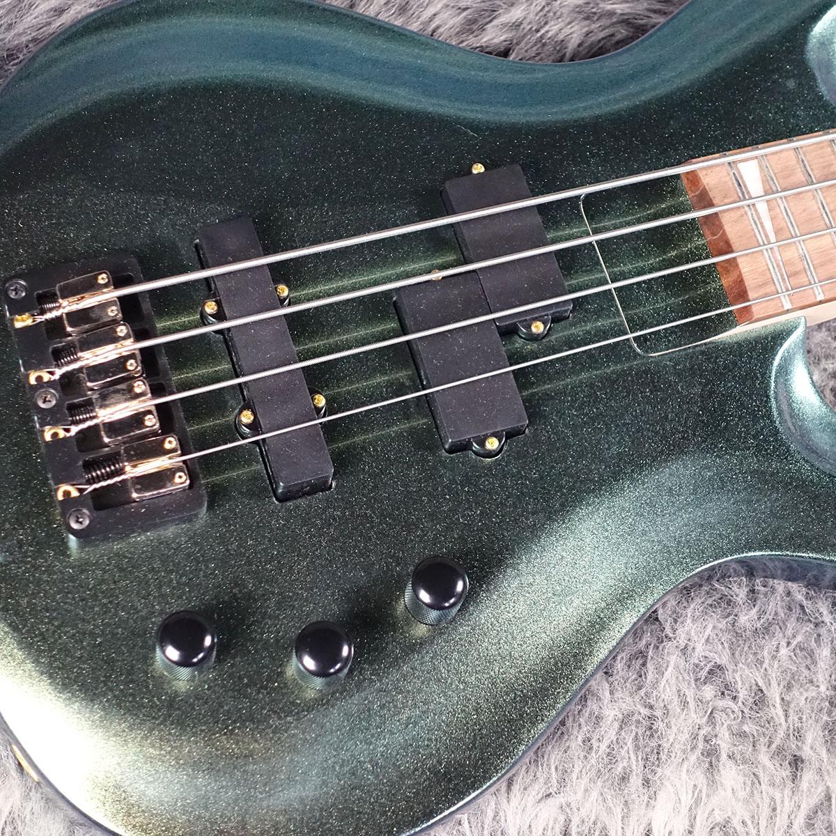 24F仕様。ピック・アップ構成はPJ配列と扱いやすい仕様でこちらも好印象。ジョイント部も加工されており、ハイポジションの演奏性も抜群です。