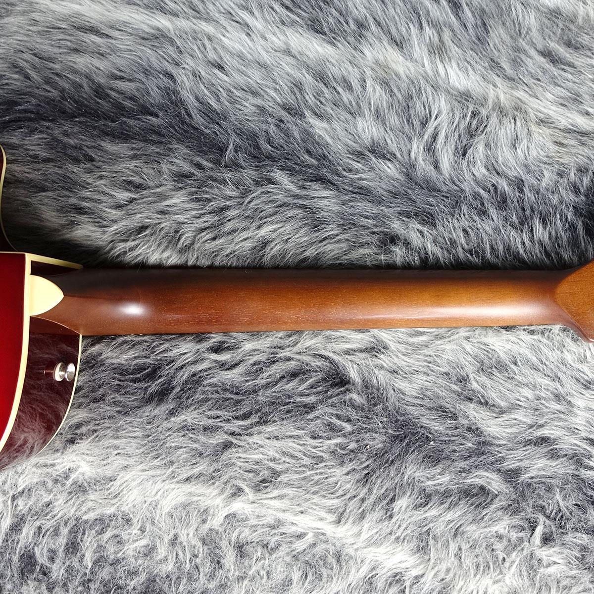 全体に擦り傷や、細かな打痕、金属パーツにくすみ、指板ローフレット周りに凹みなどが見られますが、著しく外観を損なうほどの大きなダメージは見受けられず、概ねキレイな状態をキープしています。