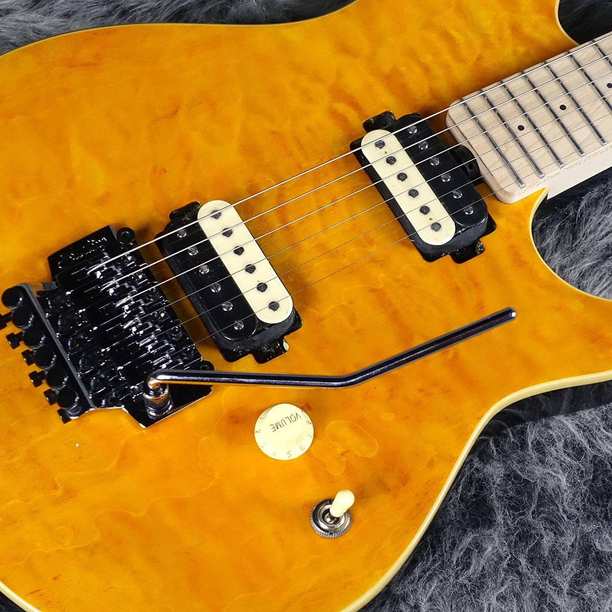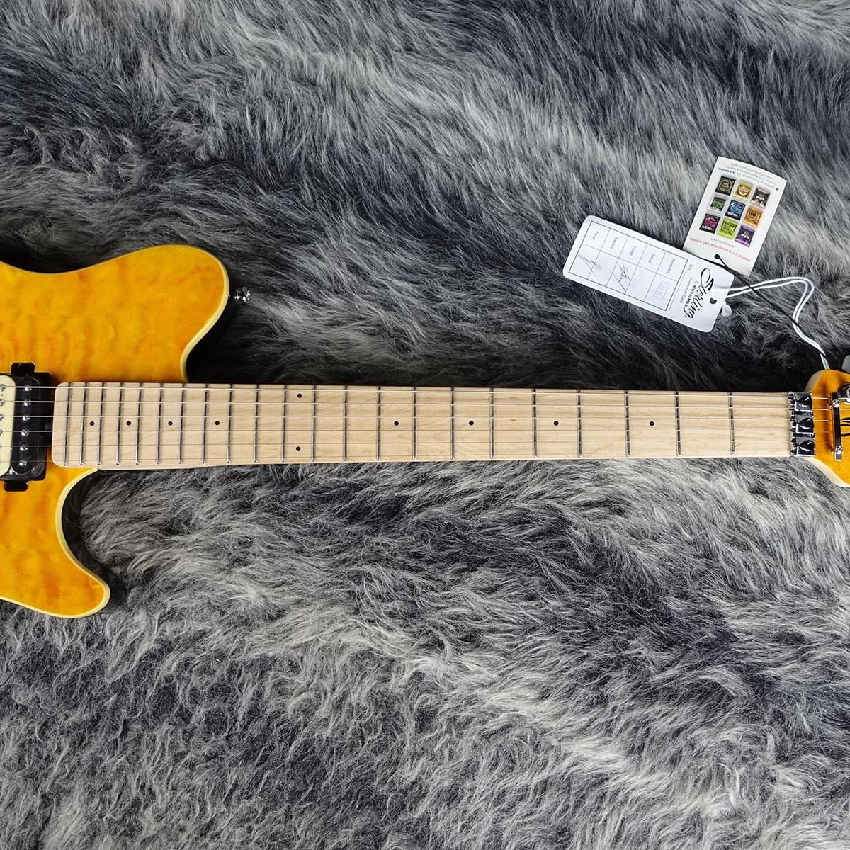 オリジナルのバスウッドボディに華やかなキルトメイプルをラミネートした華やかなルックス。