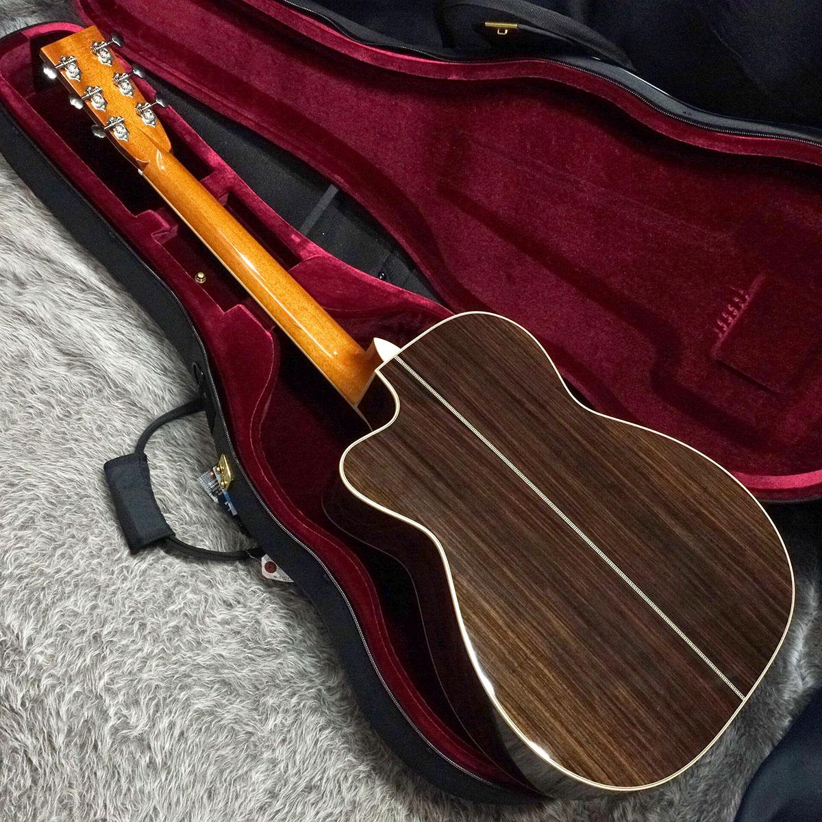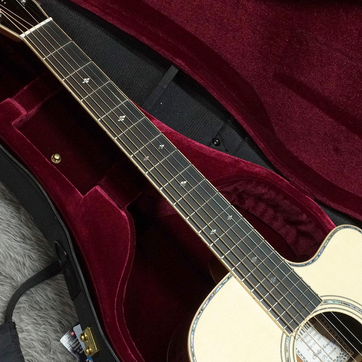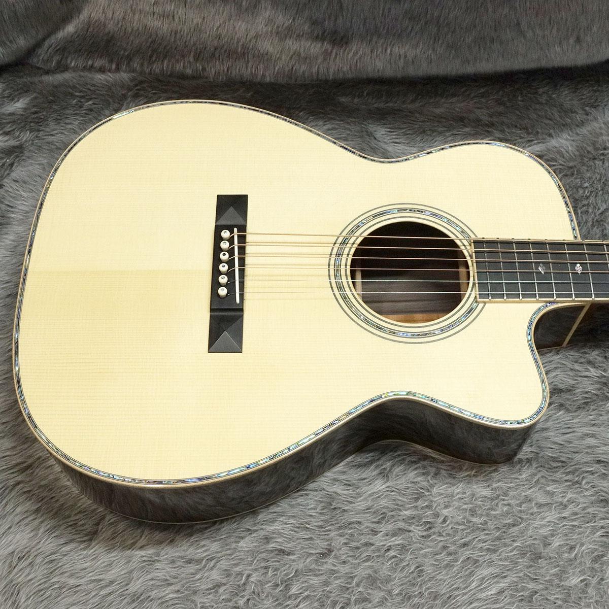 ボディはトップとバックに単板を採用し、音の立ち上がりの速さをコンセプトの一つとしている本機はフィンガースタイルだけでなく、ピックでのストロークのプレイヤーにもおすすめの一本。