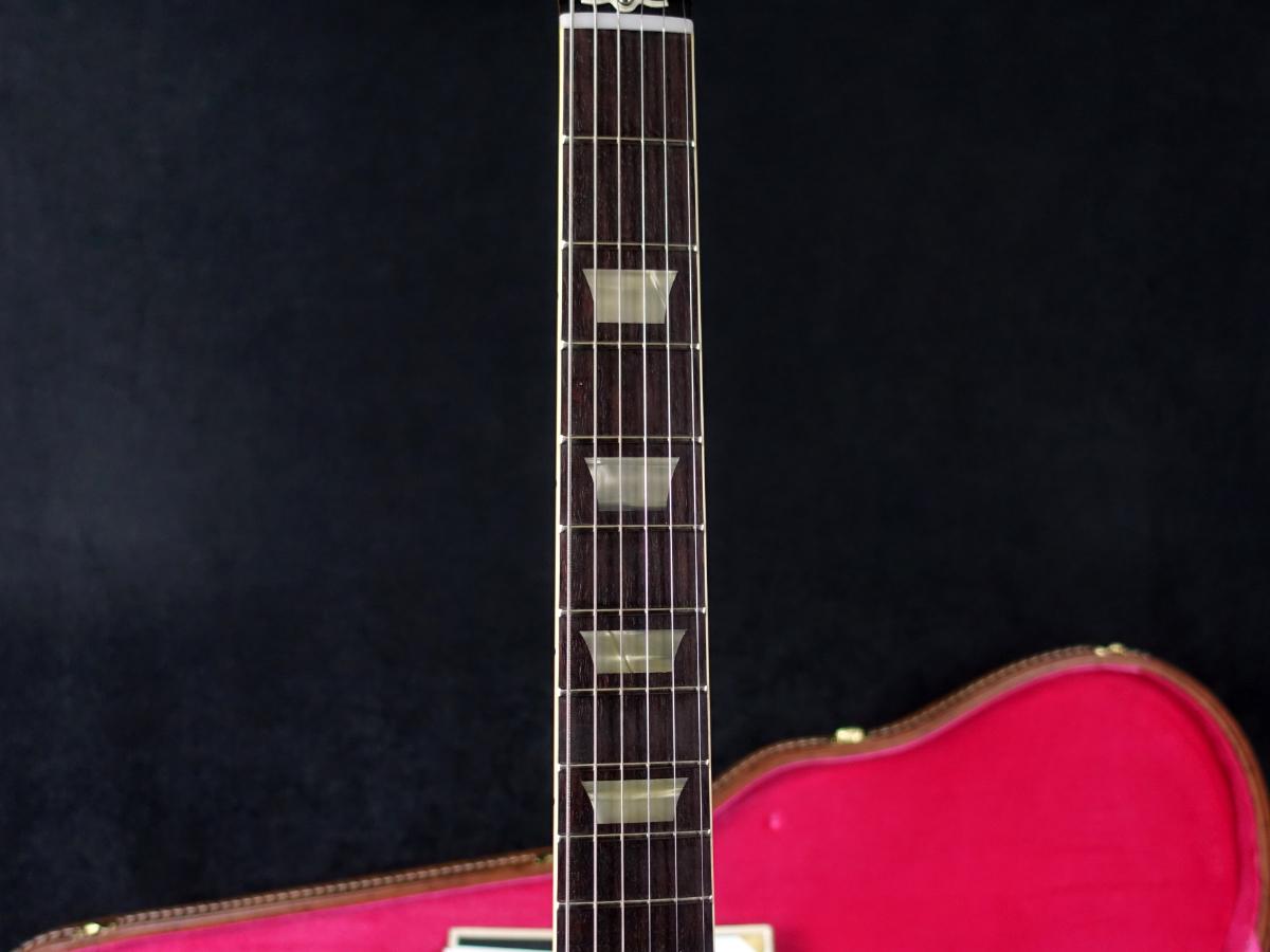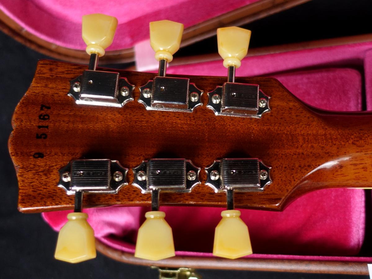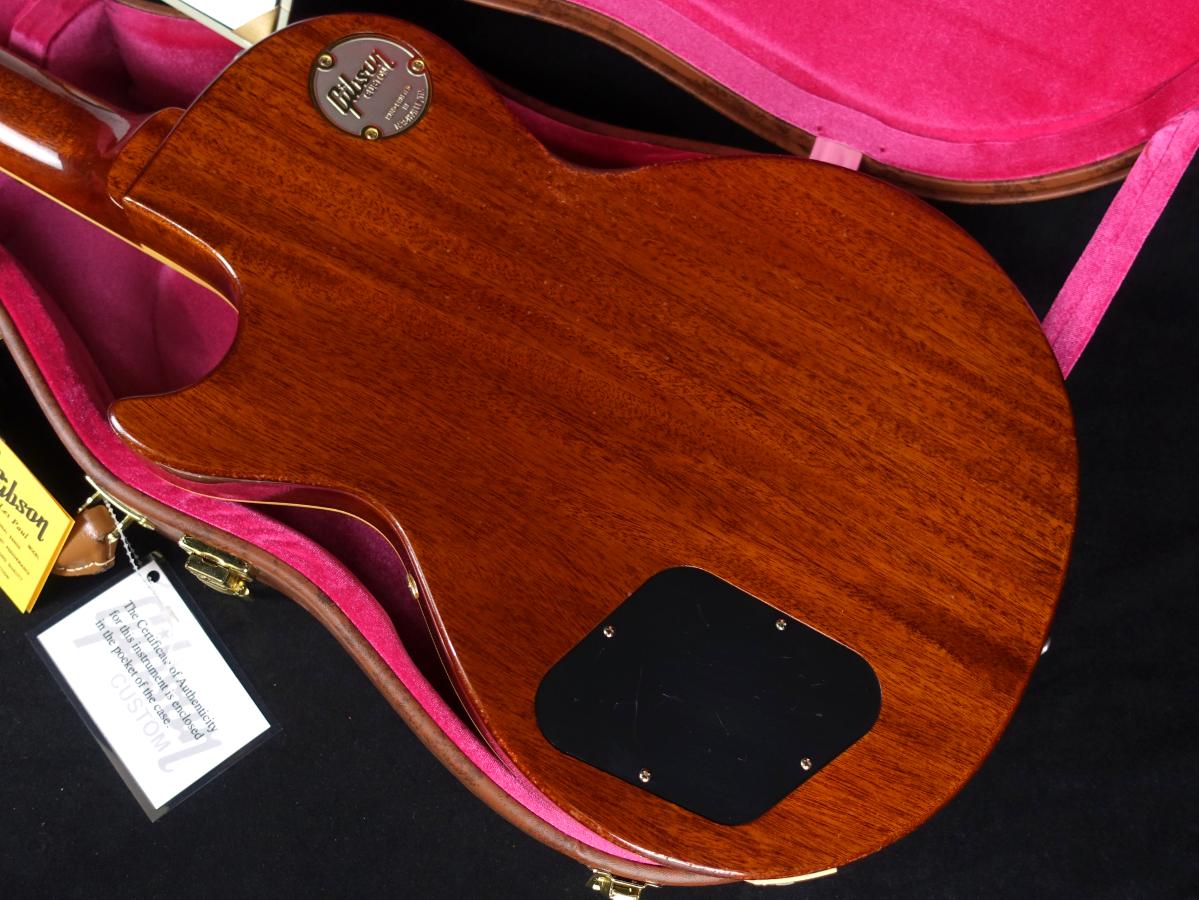 2019年にリファインされた、リアルさを増した“Gibson”&“Les Paul”ロゴ、リアルな色味に変わったディッシュインレイの採用による外観上のブラッシュアップやアンポッテッドのカスタムバッカー、ヴィンテージライクなキャパシターやポットを搭載。